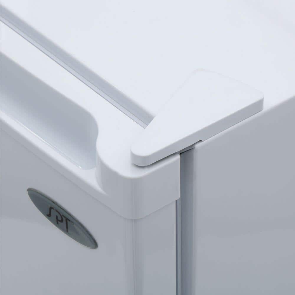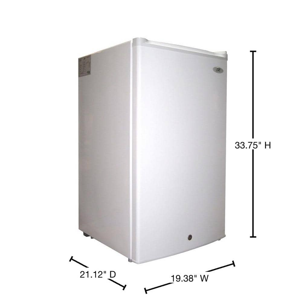 This 3.0 cu. ft. upright freezer in white has a keyed lock to protect frozen foods from unauthorized eaters. Perfect for common areas like lunchrooms, multi-bedroom apartments, offices and dormitories where others might be tempted to raid your stash, this lockable appliance will keep vultures at bay. The adjustable thermostat keeps the internal temperature as low as 0°F and three pull-out baskets make easy work of storage and organization. A recessed handle contributes to the sleek look of the freezer while the reversible door offers flexibility of placement in your space.