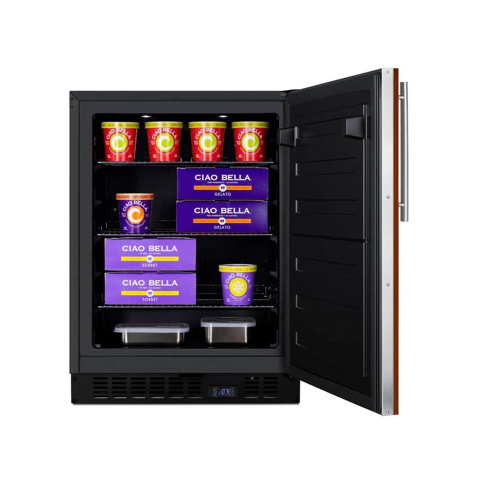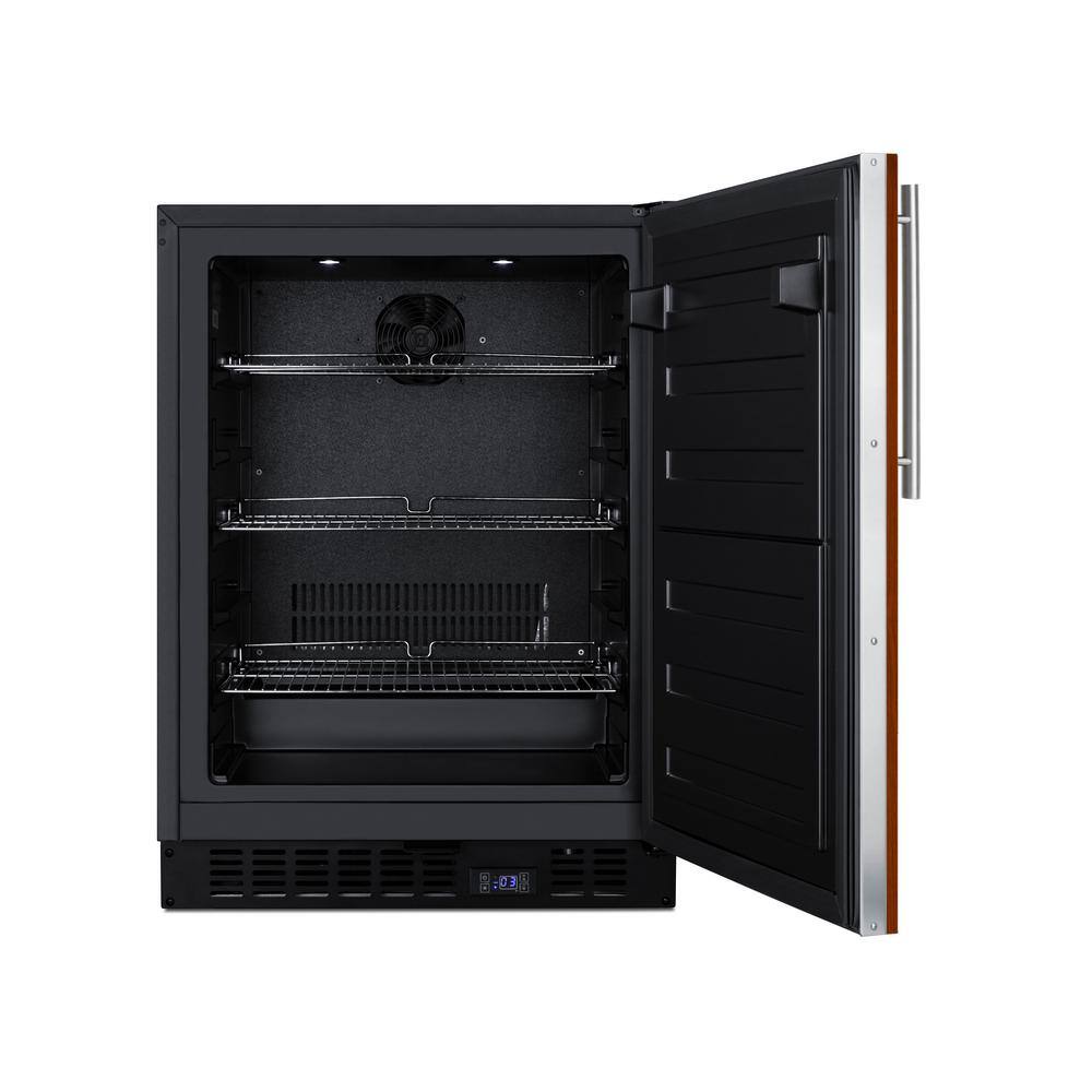 Model ALFZ53IF is a 24 in. wide all freezer that can be paired with our AL54IF all-refrigerator. Sized at just 32 in. high, it can easily be installed under an ADA compliant counter. The door features an integrated stainless-steel frame designed to accept full panel overlays, allowing users to seamlessly blend the unit into their own cabinetry design (panel size: 28-3/16 in. H x 23-5/16 in. W; maximum weight: 10 lbs.). This unit has a flush back for easy cleaning and a right-angle cord. Inside, the ALFZ53IF utilizes frost-free operation with fan-forced cooling to ensure low maintenance and even temperature distribution. Recessed LED lighting offers an attractive yet efficient look inside the black interior. 3 adjustable chrome shelves can be set at five different positions to best accommodate your storage needs. Additional user-friendly features include an open-door alarm, high temperature alarm, and sabbath mode setting that lets you disable some of the electrical elements during periods of observance. This unit features intuitive digital controls located in the external kickplate. With its deluxe style and user-friendly features, this unit is the perfect choice for home kitchens. It's a perfect match for our AL54IF all-refrigerator, both panel-ready to create a truly custom refrigerator/freezer set under ADA compliant counters.