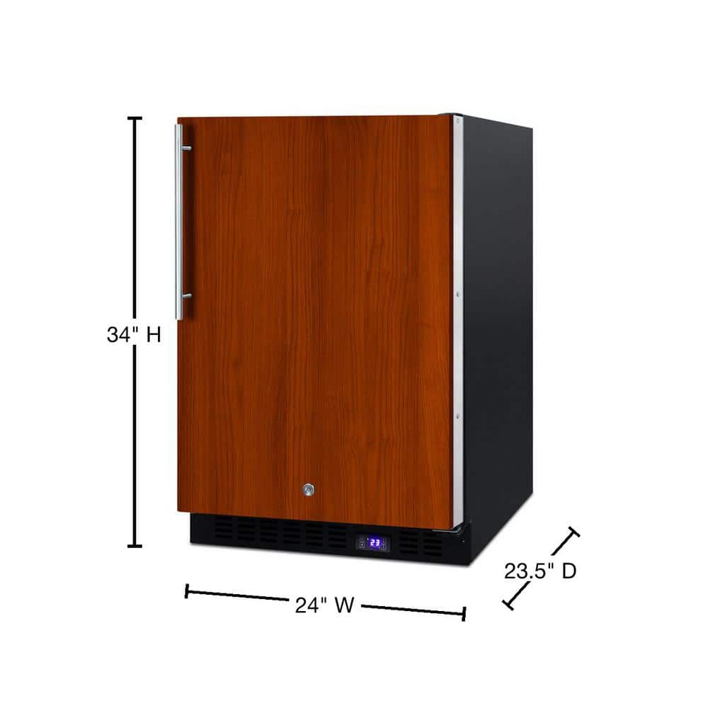 SUMMIT's SCFF53B Series brings quality and convenience under the counter with a fully featured lineup of built-in frost-free all-freezers. Sized with a convenient 24 in. footprint, the SCFF53BIF freezer can be used built-in or freestanding. It has a black cabinet with a sealed back for easy cleaning. The door features an integrated stainless steel frame designed to accept full overlay panels, letting you seamlessly blend the unit into your own cabinetry design. Users provide their own handle to complete the custom look.Inside, the SCFF53BIF utilizes frost-free operation with fan-forced cooling to ensure low maintenance and even temperature distribution. Recessed LED lighting offers an attractive yet efficient look. The digital thermostat makes it easy to manage the interior temperature. This unit includes adjustable chrome shelves for flexible storage. Additional features include an open door alarm, high temperature alarm and Sabbath mode setting that lets you disable some of the electrical elements during periods of observance. With its deluxe style and user-friendly features, this unit is the perfect choice for home kitchens.