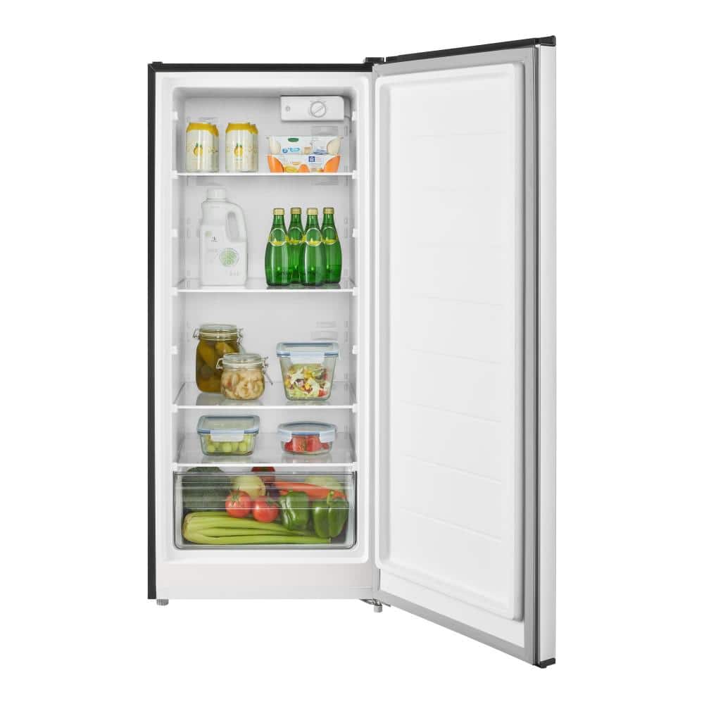 Bring freshness to your life with the garage ready Vissani 7.1 cu. ft. upright freezer/refrigerator. Comes complete with 4 adjustable glass shelves and 1 removeable basket to easily manage your freezer or fridge storage space. The convertible function allows you to utilize either the freezer or fridge temperatures based on your needs. Features a recessed handle design and a stainless steel finish.