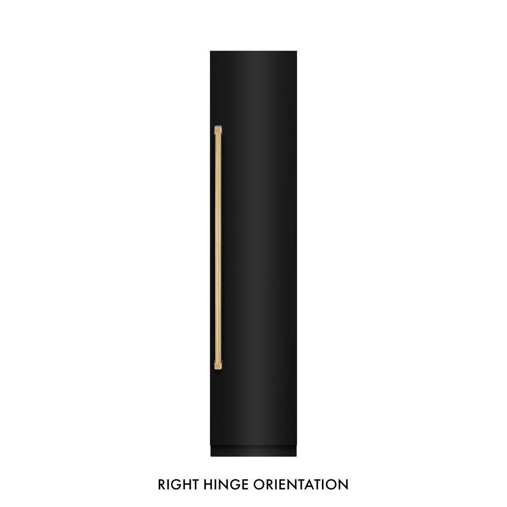 Luxury isn't meant to be desired - it's meant to be attainable. The ZLINE Autograph Edition 18 in. 8.6 cu. ft. Right Hinge Column Freezer in Black Stainless Steel with Graphite Gray Interior and Polished Gold Accents (RCFVRZ-BS-18-G) combines the convenience of a sleek integrated tall column built-in design with efficient freezing technology and spacious storage capacity for multiple grocery items. Achieve ZLINE Attainable Luxury excellence with innovative features designed to enhance your kitchen's freezing capability.