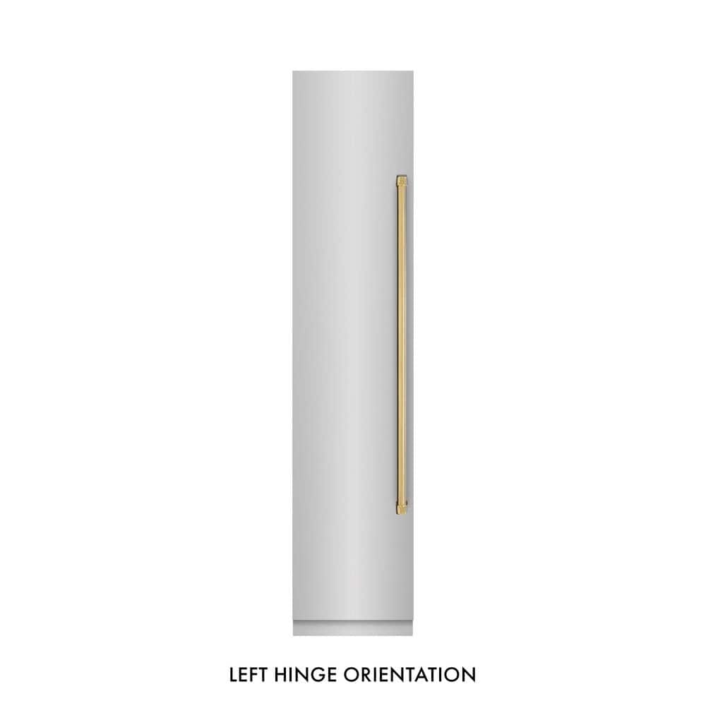 Luxury isn't meant to be desired - it's meant to be attainable. The ZLINE Autograph Edition 18 in. 8.6 cu. ft. Left Hinge Column Freezer in Stainless Steel with Graphite Gray Interior and Polished Gold Accents (RCFVLZ-30418-G) combines the convenience of a sleek integrated tall column built-in design with efficient freezing technology and spacious storage capacity for multiple grocery items. Achieve ZLINE Attainable Luxury excellence with innovative features designed to enhance your kitchen's freezing capability.