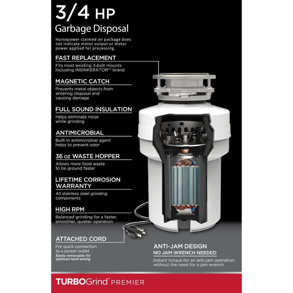 Glacier Bay Turbo Grind Premier 3/4 hp Continuous Feed Garbage Disposal with Power Cord