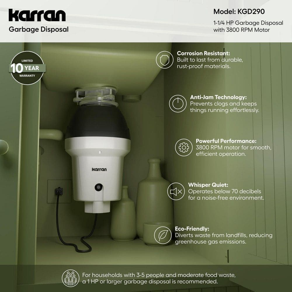 Karran 1-1/4 HP Continuous Feed Garbage Disposal with Power Cord