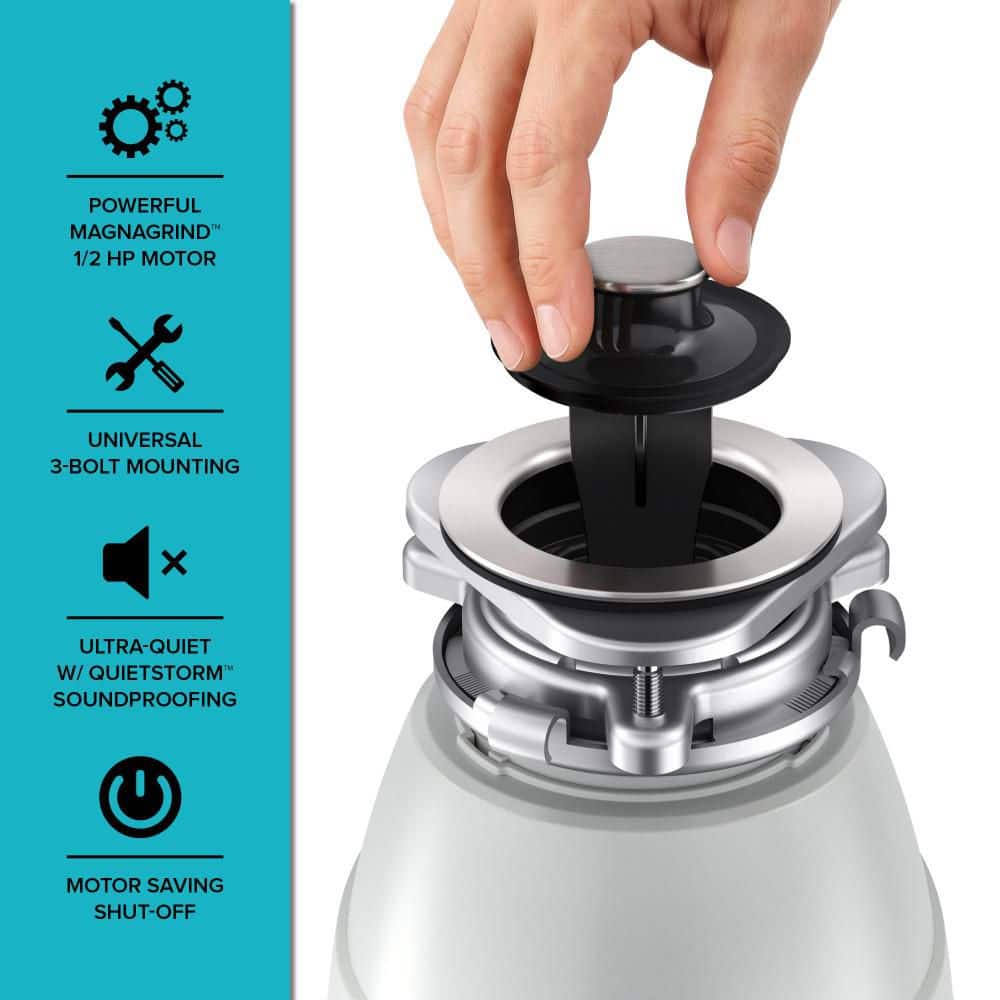 - Automatic shutoff with reset button protects the disposal