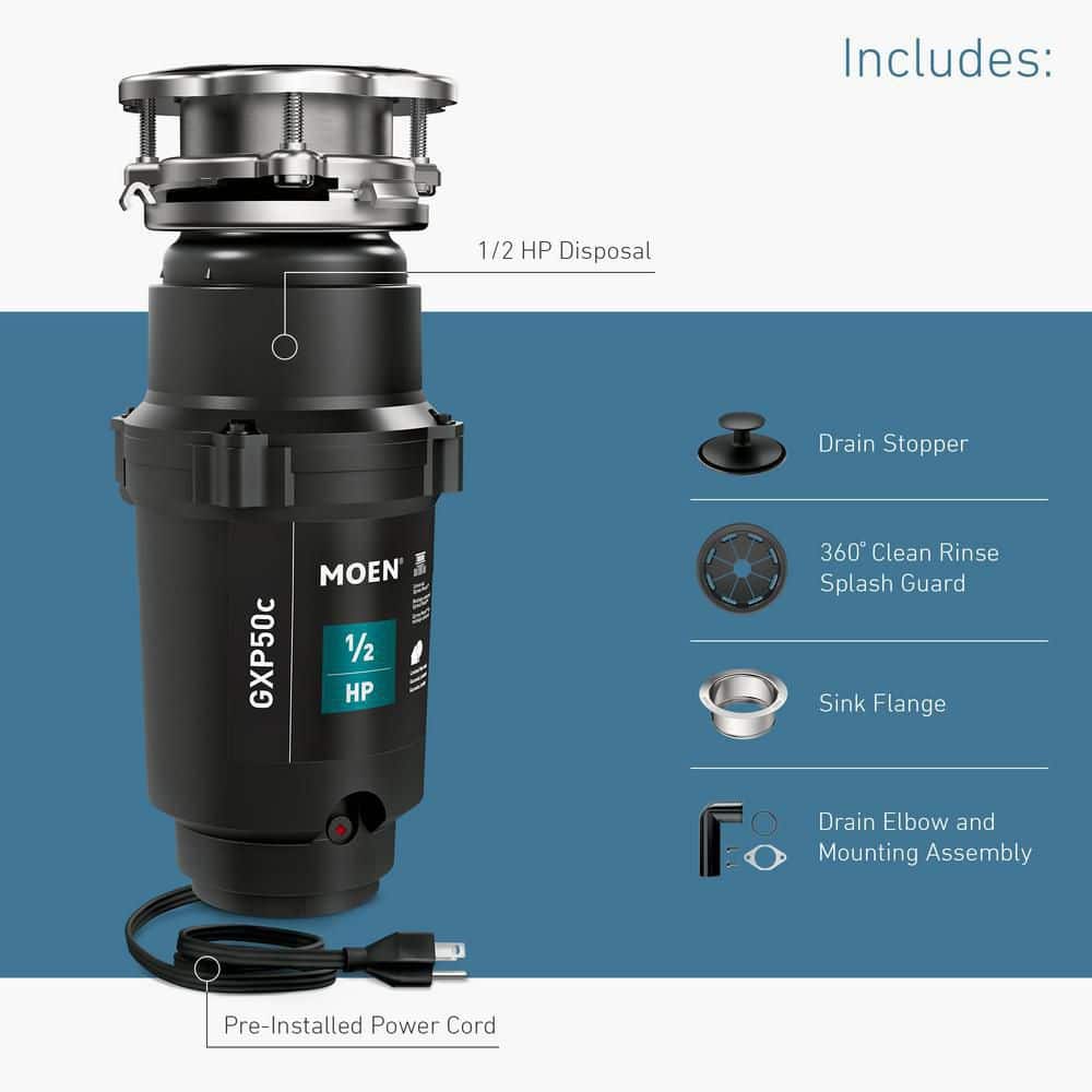MOEN Prep Series 1/2 HP Continuous Feed Garbage Disposal with Power Cord and Universal Mount