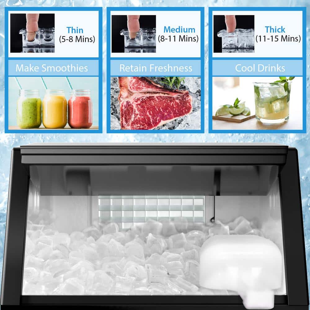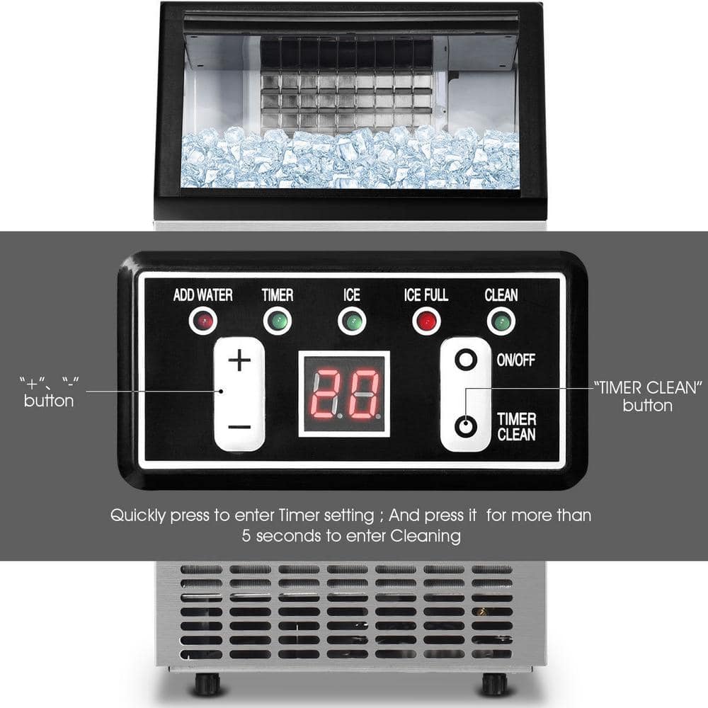 COWSAR 15.28 in. 80 lbs. Per Day Full Size Cubes Freestanding Built-in Ice Maker with 22 lbs. Storage in Stainless Steel Silver