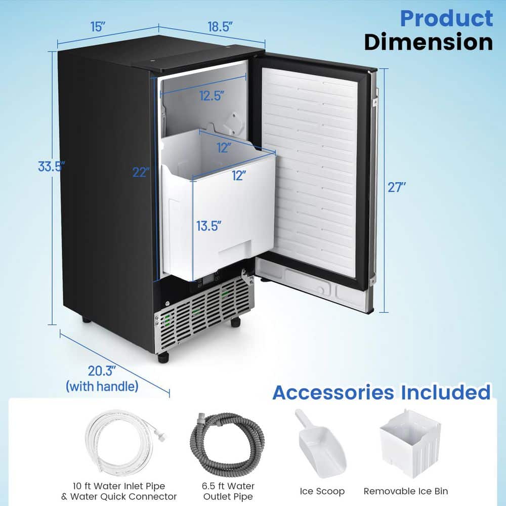 Costway 15 in. 80 lb. Built-in Ice Maker Free-Standing/Under Counter Machine in Silver