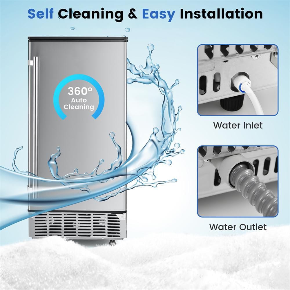 COWSAR 15.28 in. 80 lbs. Per Day Full Size Cubes Freestanding Built-in Ice Maker with 22 lbs. Storage in Stainless Steel Silver