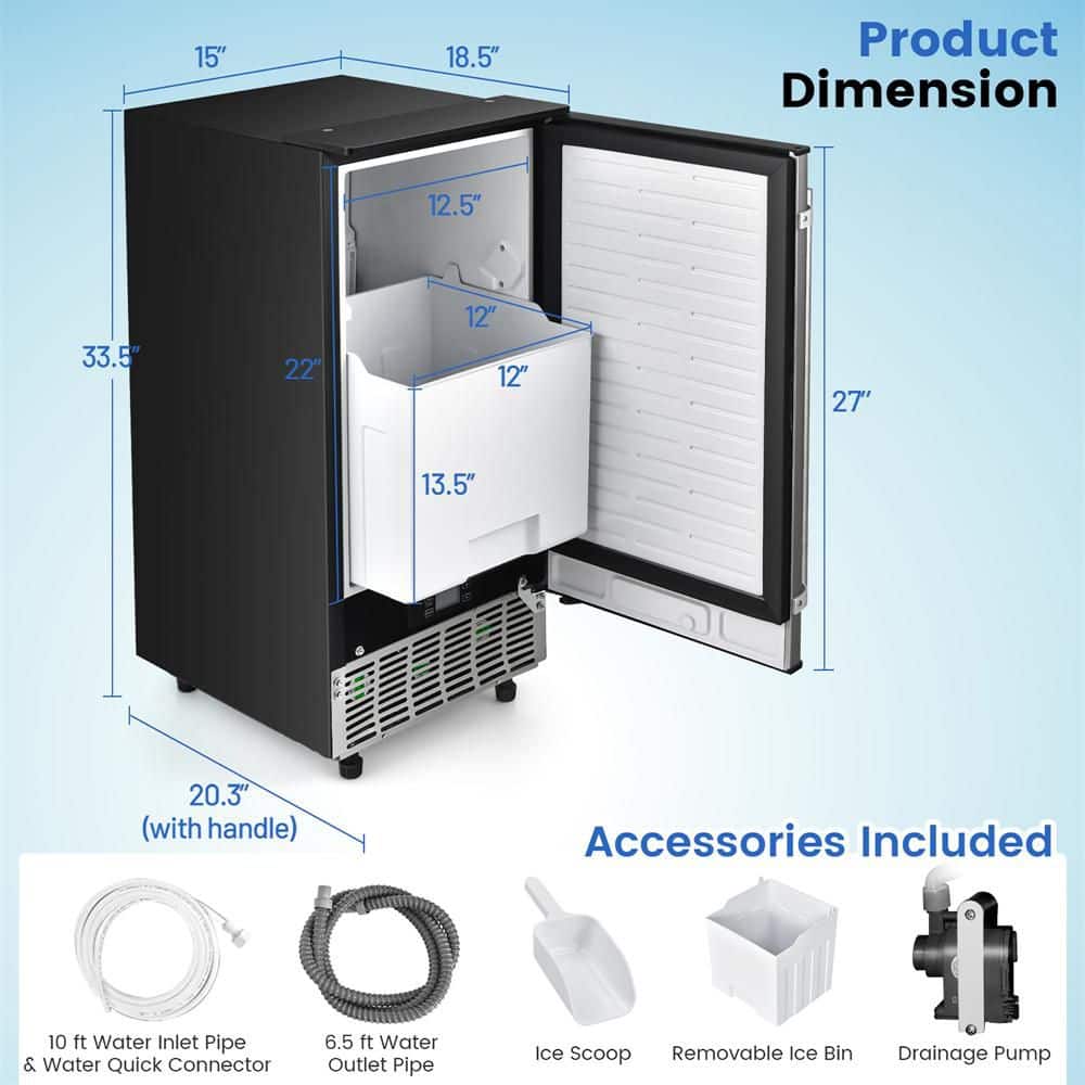 Costway 15 in. 80 lb. Built-In Ice Maker Freestanding 24H Timer Under-counter Ice Maker Machine with Drain Pump in Silver