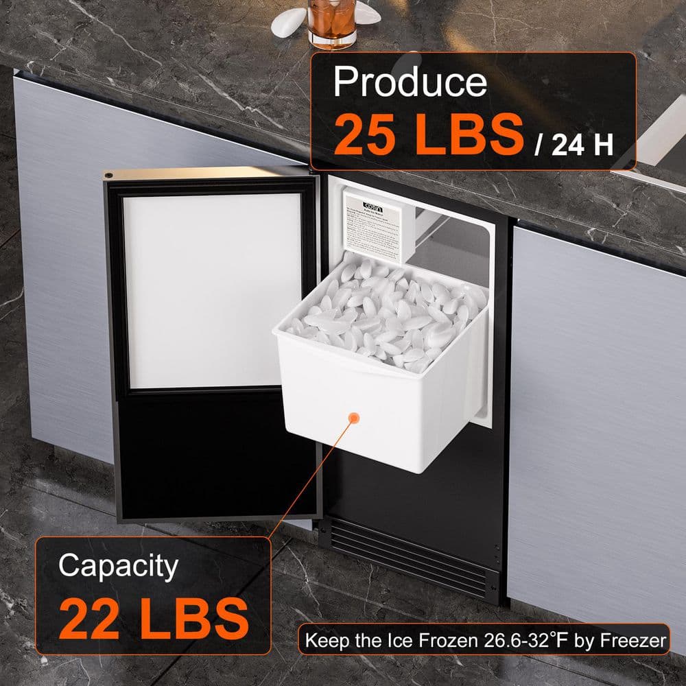 COWSAR 15.28 in. 80 lbs. Per Day Full Size Cubes Freestanding Built-in Ice Maker with 22 lbs. Storage in Stainless Steel Silver