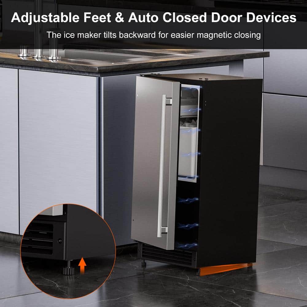 COTLIN 15 in. Undercounter/Freestanding Ice Maker in Stainless Steel, 25 lbs/Day Crescent Ice, 22 lb. Storage, Reversible Door