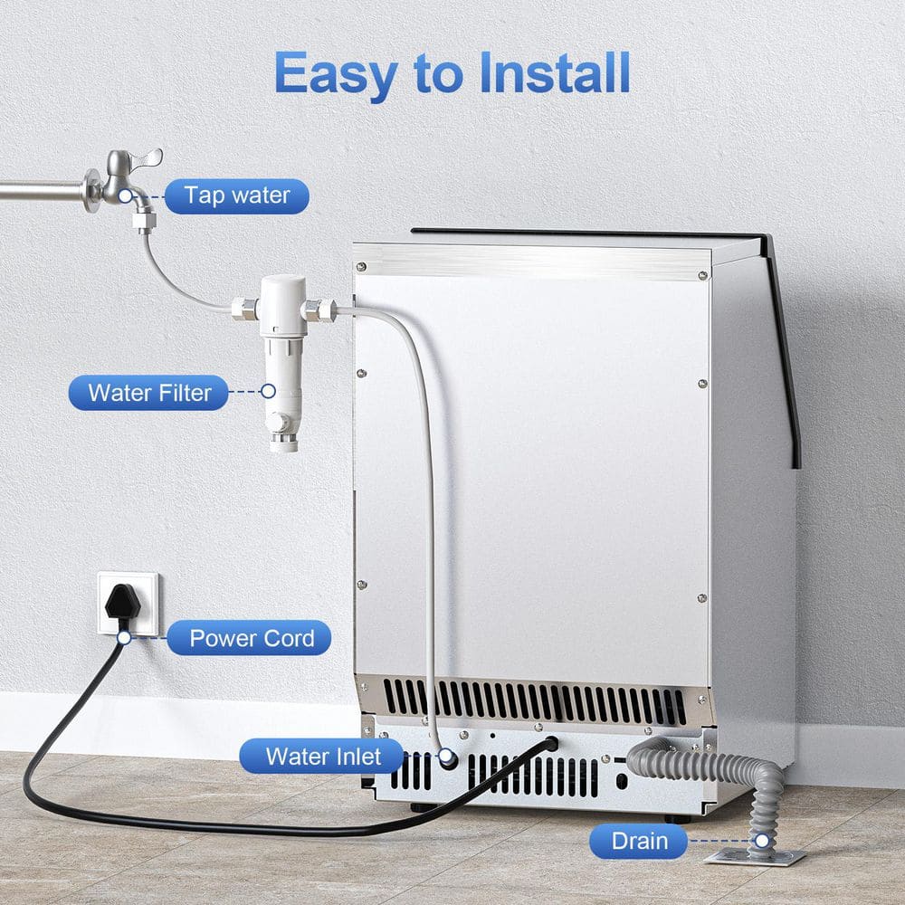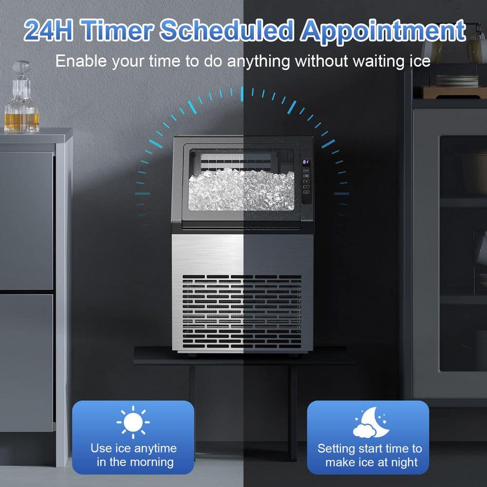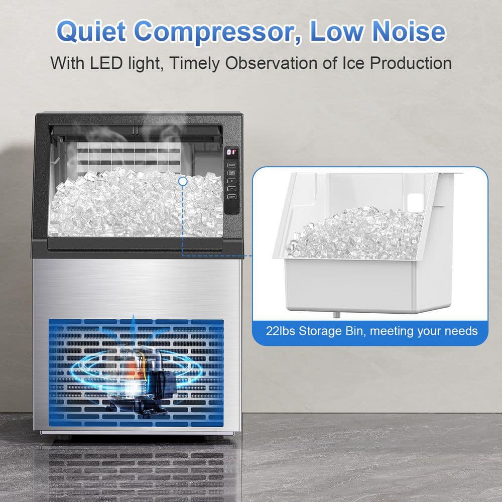 COWSAR 15.28 in. 80 lbs. Per Day Full Size Cubes Freestanding Built-in Ice Maker with 22 lbs. Storage in Stainless Steel Silver