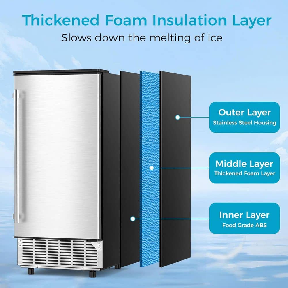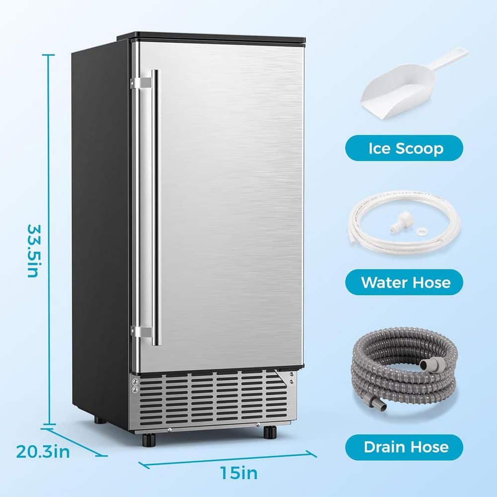 COWSAR 15 in. 80 lb. /24H Freestanding/Built-in Ice Maker 25 lb. Storage, 3-Thick Ice Cube Sizes in Stainless Steel Silver