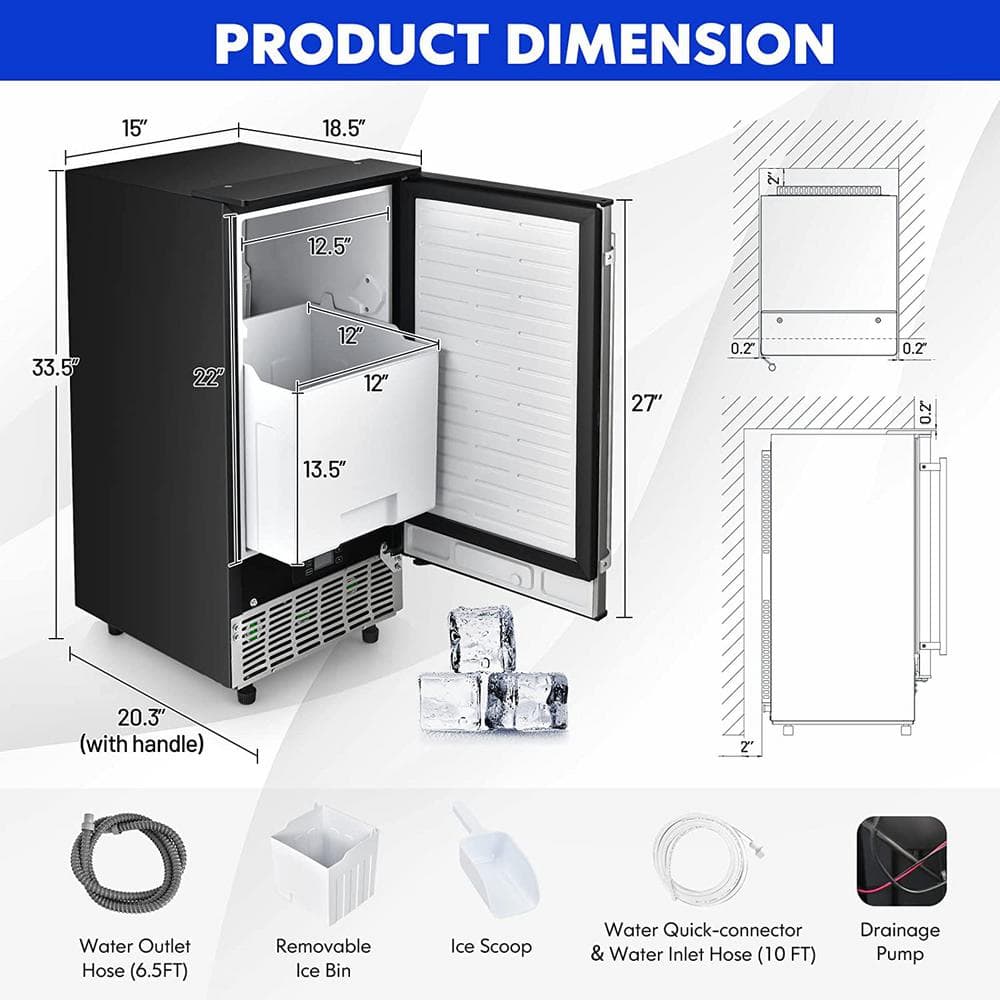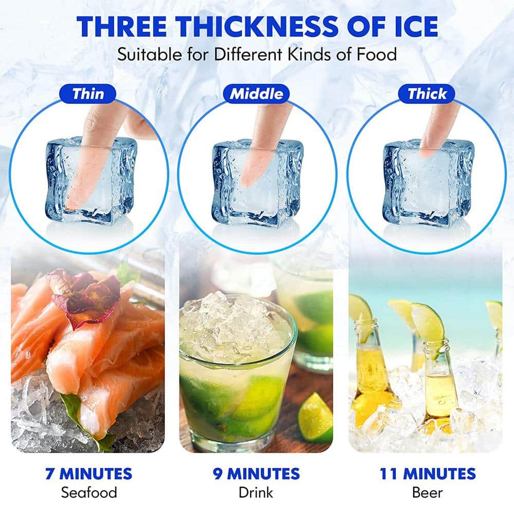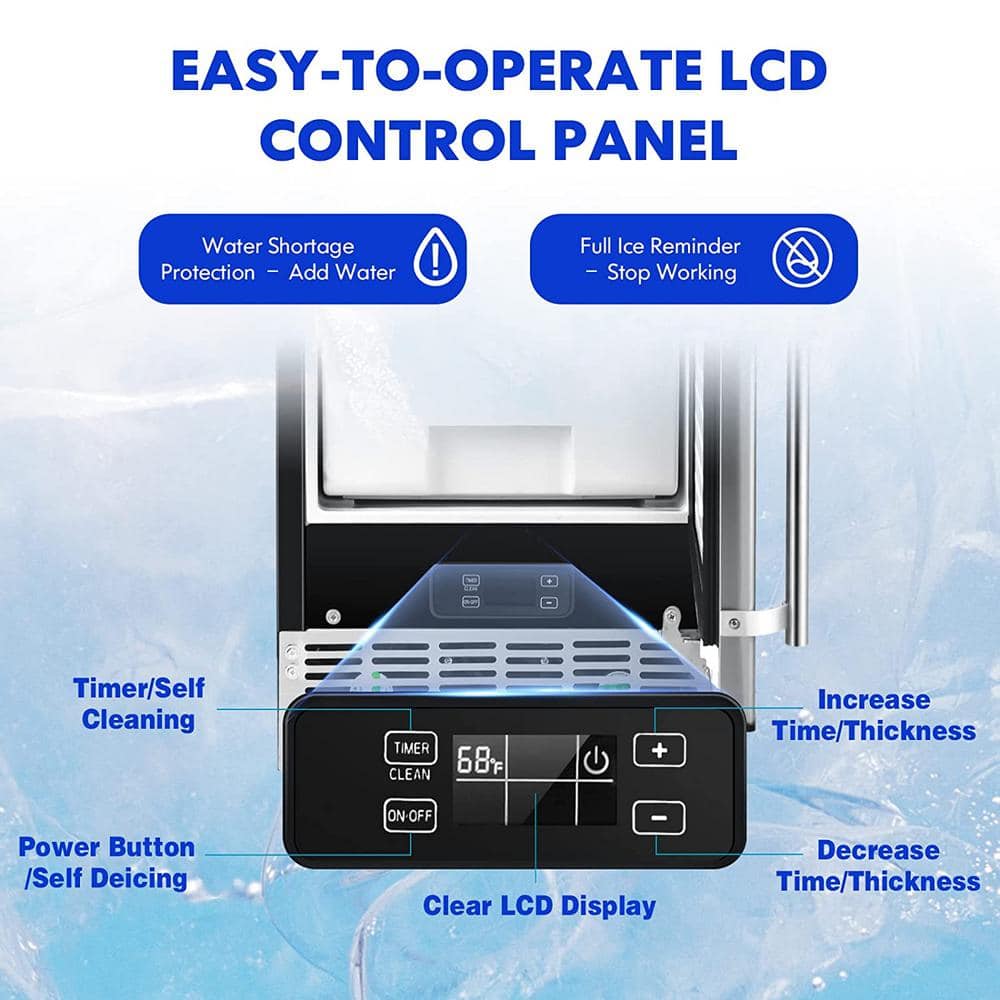This ice machine can set the start time of ice making in advance when it is in standby, and set the end time of ice making in advance when it is in operation. You can retrieve your ice cubes after 11-20 minutes, it produces 80 lbs of ice per day, and you can set the thickness of the ice cubes by increasing or decreasing the ice making time (minus 6 minutes to plus 6 minutes). Excess ice will be stored in the removable 25 lb. freezer and kept at room temperature at 68°F for 6 hours thanks to the 3-layer cold insulated outer shell. It is easy to clean and use self-cleaning and de-icing, 24-hour timer, hands-free water inlet system, no water and full ice reminder, ice thickness setting, LED light, and can switch 2 temperature units. This ice maker fits under a standard kitchen countertop or in a den, basement, bar, garage, helping you save space.