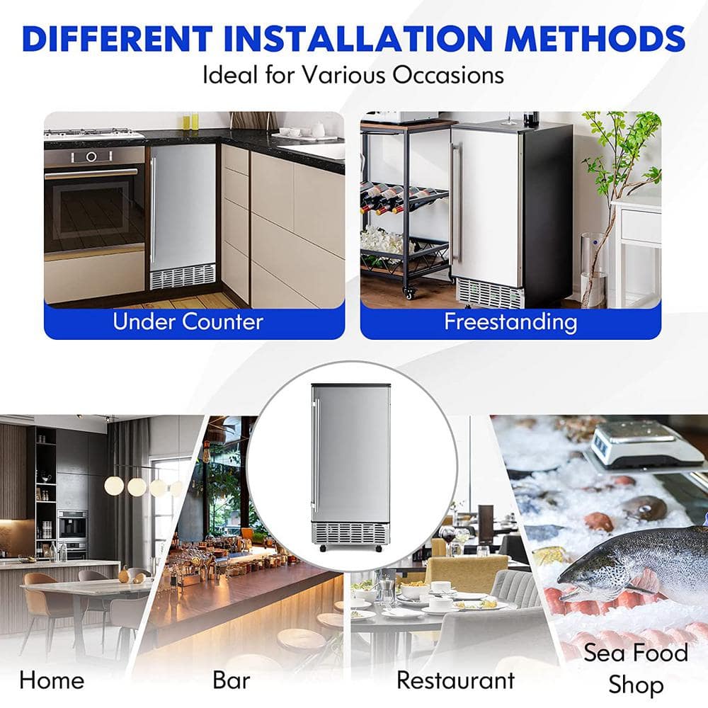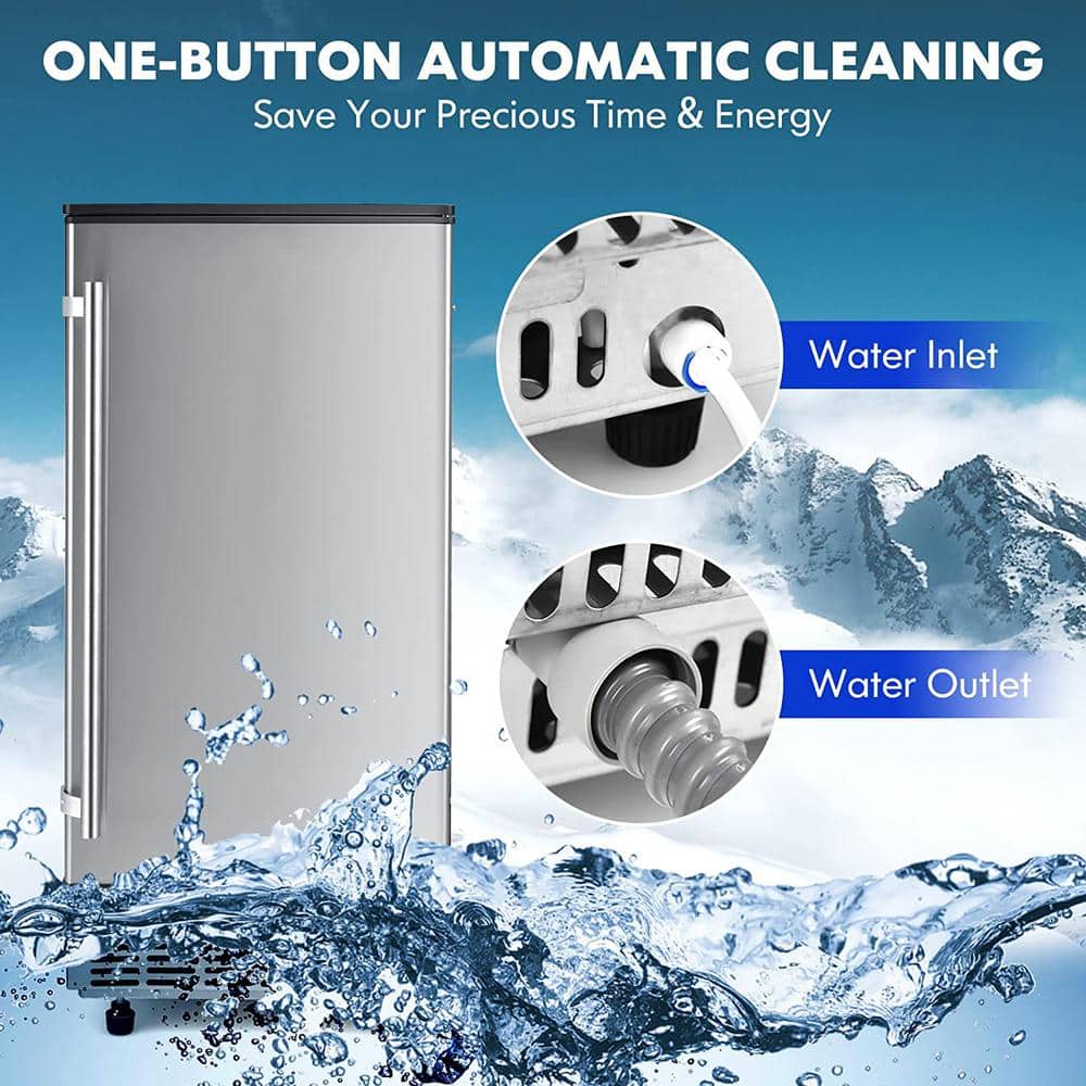 COWSAR 15.28 in. 80 lbs. Per Day Full Size Cubes Freestanding Built-in Ice Maker with 22 lbs. Storage in Stainless Steel Silver