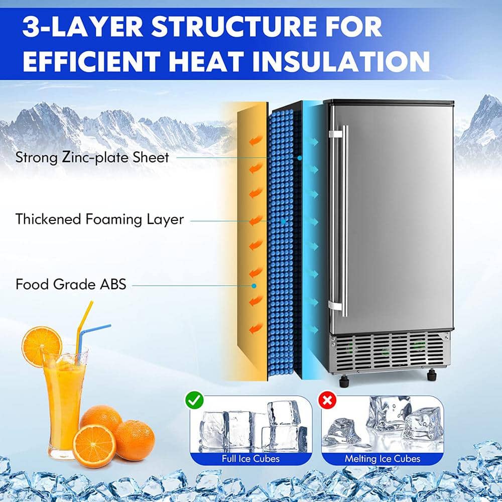Gymax 15 in. 80 lb. Stainless Steel Built-In Ice Maker 24 hour Timer Cold Insulation in Silver