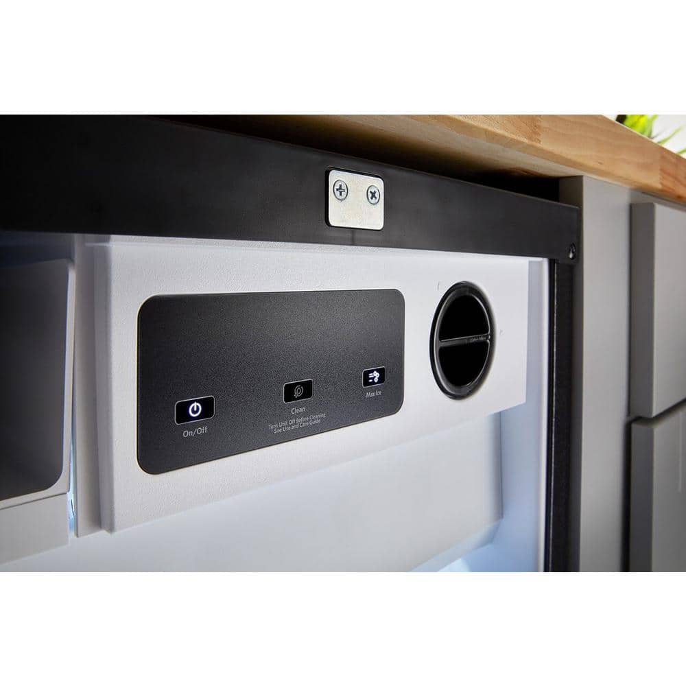 This 18 in. ice maker produces ice with a shape and size that makes it ideal for a variety of entertaining needs. Fully Flush Installation blends with surrounding cabinetry for a refined built-in look. A drop-down door helps enable that flush appearance while providing convenient access to the deep storage bin, which can hold up to 35 lbs. of ice.
