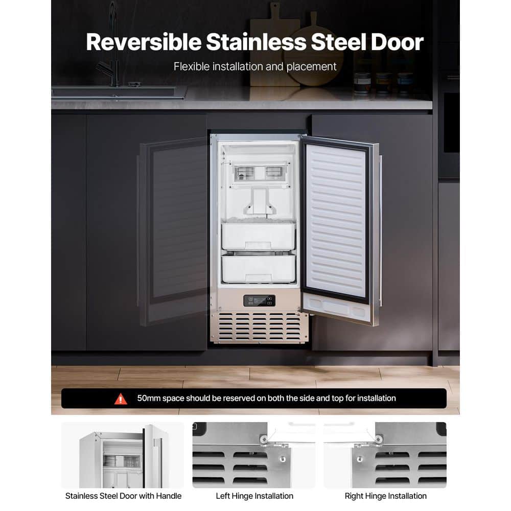 VEVOR Undercounter Ice Maker 66 lbs./Day Stainless Steel Built-in Freestanding 14.96 in. W for Commercial Home Kitchen Nugget