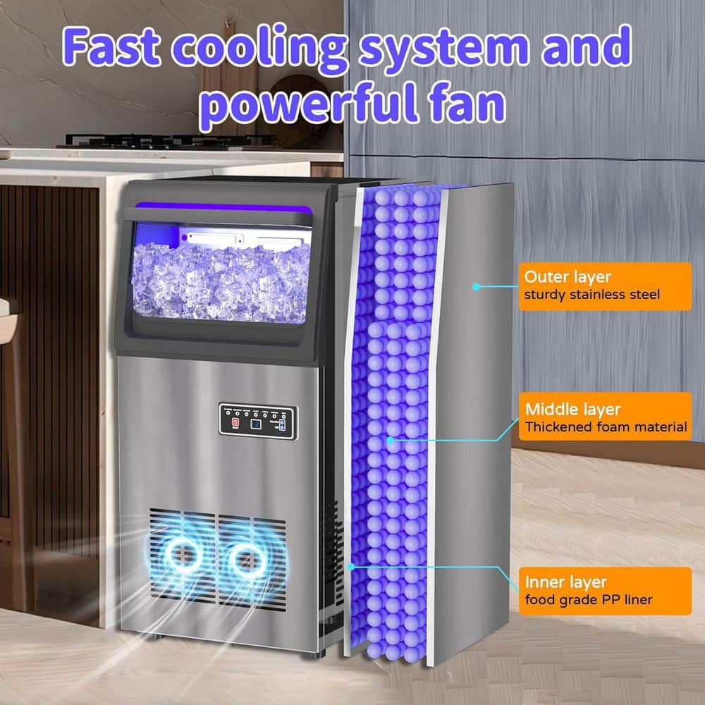 Mojgar 22.83 in. 500 lb. /24H Commercial Freestanding Ice Maker in Silver, Stainless Steel, with 400 lb. Storage Capacity