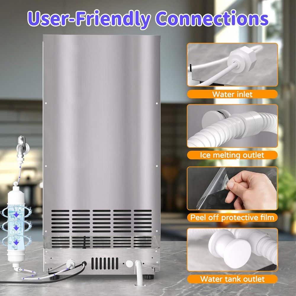 Discover the AMADVI Nugget Ice Maker - engineered to deliver the uniquely chewable, soft-but-crunchy pellet ice that everyone loves. Perfect for snacking, chilling drinks, iced coffee, or slushies, this under-counter machine produces up to 80 lbs. of ice per day and stores 20 lbs., ensuring you never run out. With its quiet energy-saving compressor, intuitive digital controls, and built-in self-cleaning system, it's designed for effortless operation in homes, offices, bars, and beyond. Stay stocked with fresh, crystal-clear nugget ice - ready in just minutes.