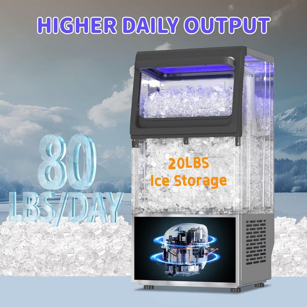 - Produces 80 lbs. of nugget-sized pellet ice per day