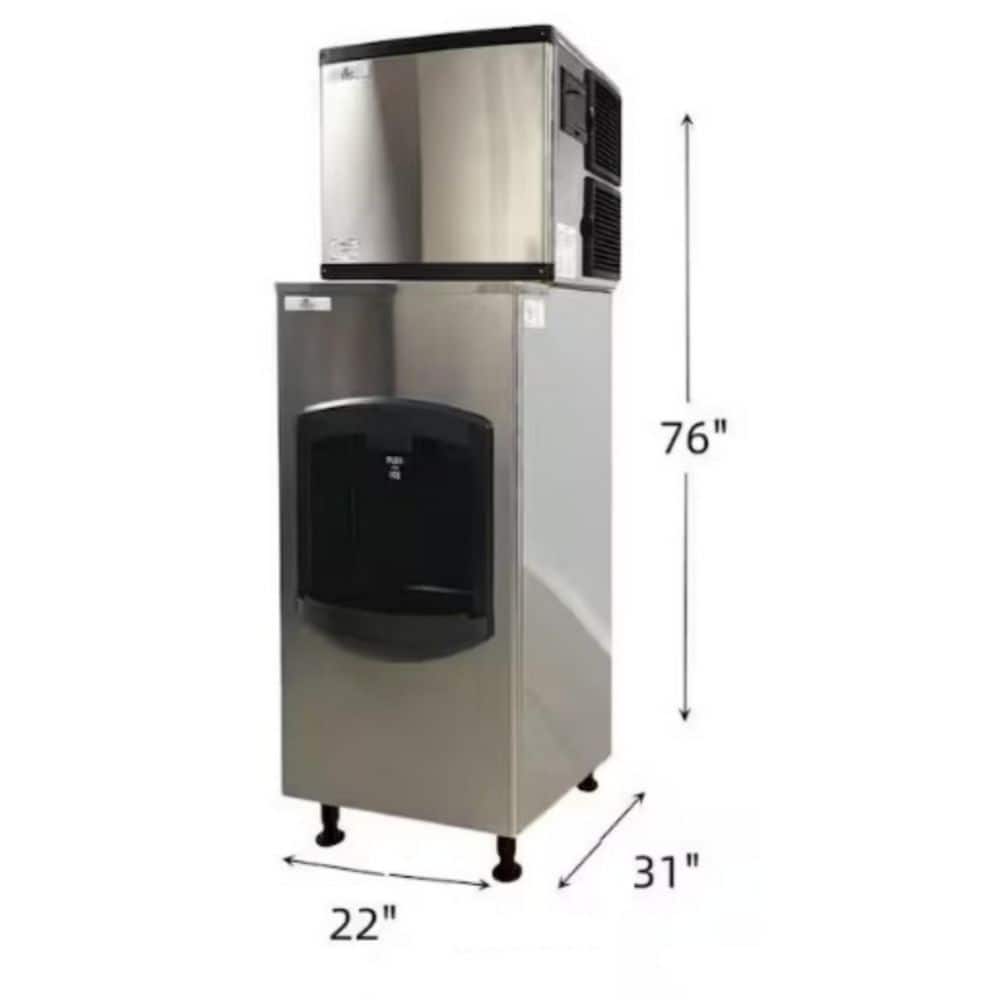 Mojgar 22.83 in. 500 lb. /24H Commercial Freestanding Ice Maker in Silver, Stainless Steel, with 400 lb. Storage Capacity