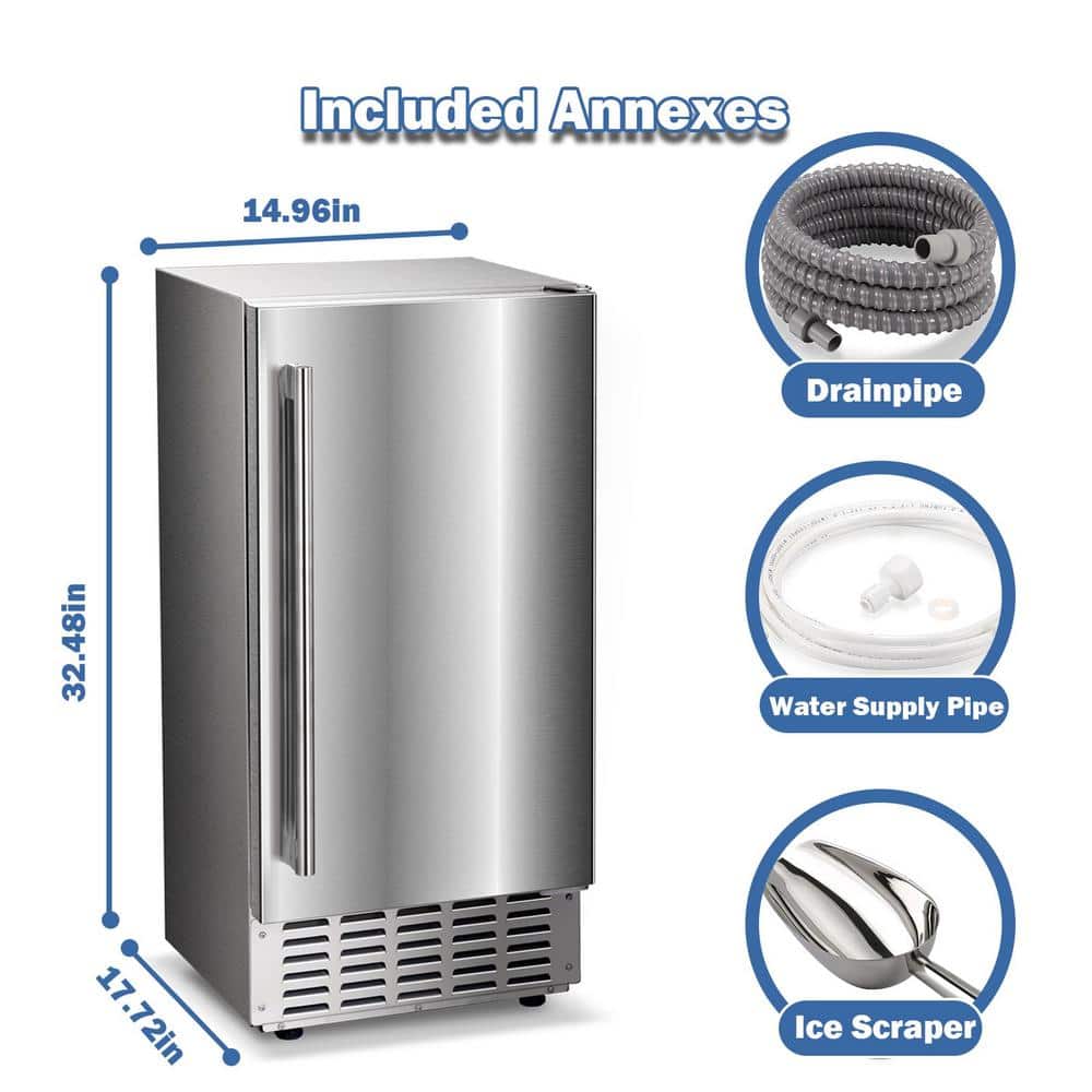 Maxx Ice 50 lb. 15 in. Undercounter Freestanding Outdoor Ice Maker in Stainless Steel