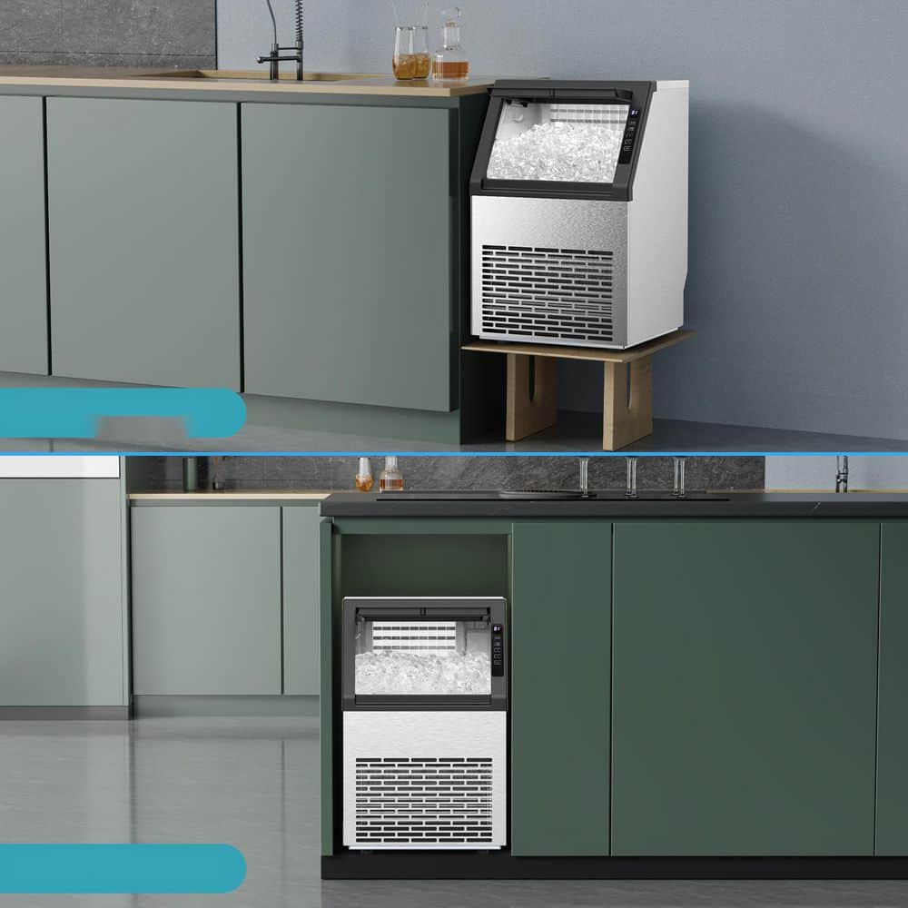 COWSAR 15.27 in. 80Lbs Commercial Cube Ice Maker Machine With 22Lbs Ice Storage Capacity, Freestanding/ Undercounter in Silver