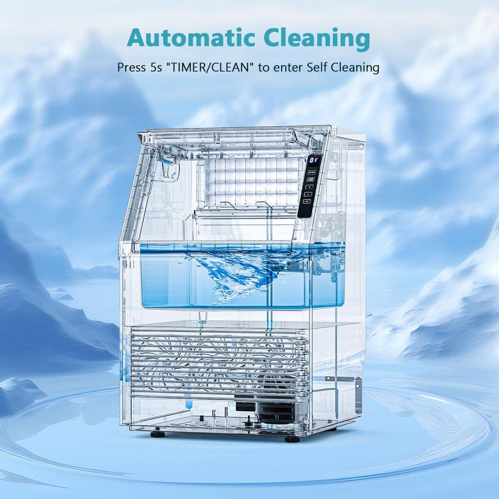 Elevate your ice-making experience with the COWSAR Commercial Ice Machine. Designed for professional-grade performance, it produces 36 cubes in as little as 11 minutes and up to 80 lbs. of ice per day. The user-friendly LCD panel allows you to easily customize ice thickness, set timers, and initiate self-cleaning. Ideal for kitchens, bars, offices, and home use, this versatile machine can be built-in or placed freestanding. Its compact design includes a 22 lb. storage bin and operates quietly with energy-efficient reliability. Perfect for high-demand environments, COWSAR delivers powerful, convenient ice production wherever you need it.
