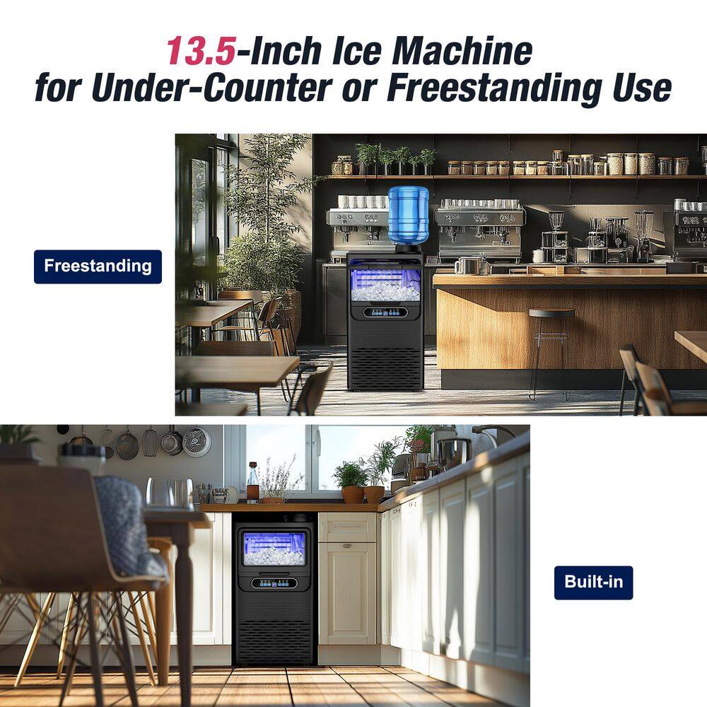 Denjol 13.5 in. 90 lb. Half Cube Built-In/Freestanding Commercial Ice Maker in Black with 12 lb. Storage Case and Water Inlet