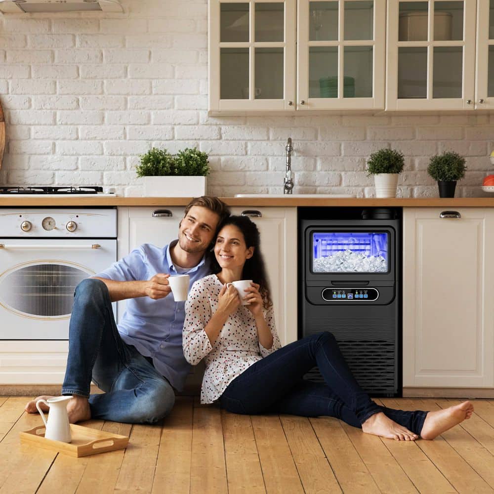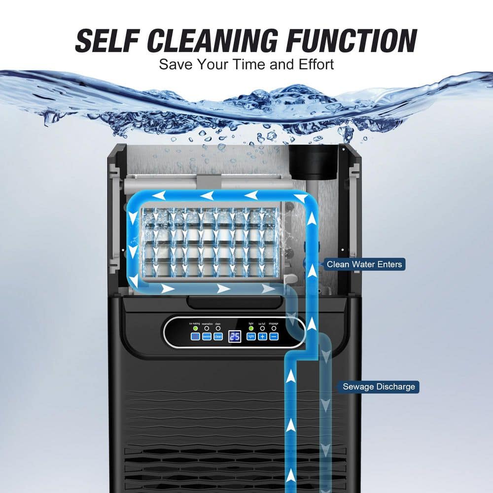 Commercial-Grade Ice Maker - 8-Minute Rapid Ice Production, 90 lbs. Daily Output. Experience the ultimate in ice-making efficiency with our high-performance commercial ice machine. Equipped with an upgraded low-noise compressor, it produces 36 ice cubes in just 8-15 minutes and delivers a staggering 90 lbs. of ice per day-perfect for high-demand settings. The 12 lb. storage capacity, combined with thickened insulation, ensures long-lasting ice retention, so you'll always have a steady supply, whether for bustling bars, busy restaurants, or lively home gatherings. Designed for convenience and hygiene, our ice maker features an intelligent control panel with self-cleaning, timed ice-making, fault alerts, and adjustable ice thickness. Crafted from food-grade stainless steel and PP interior, it guarantees clean, safe ice every time. Compatible with both tap and bottled water, the built-in high-efficiency water filter purifies water for crystal-clear, odor-free ice cubes. Built to last with heavy-duty commercial construction, this machine operates quietly and energy-efficiently, making it ideal for hotels, cafes, catering services, and home use. Say goodbye to ice shortages-enjoy instant, premium-quality ice whenever you need it. Upgrade your ice-making experience today-effortless, reliable, and always ready to serve.
