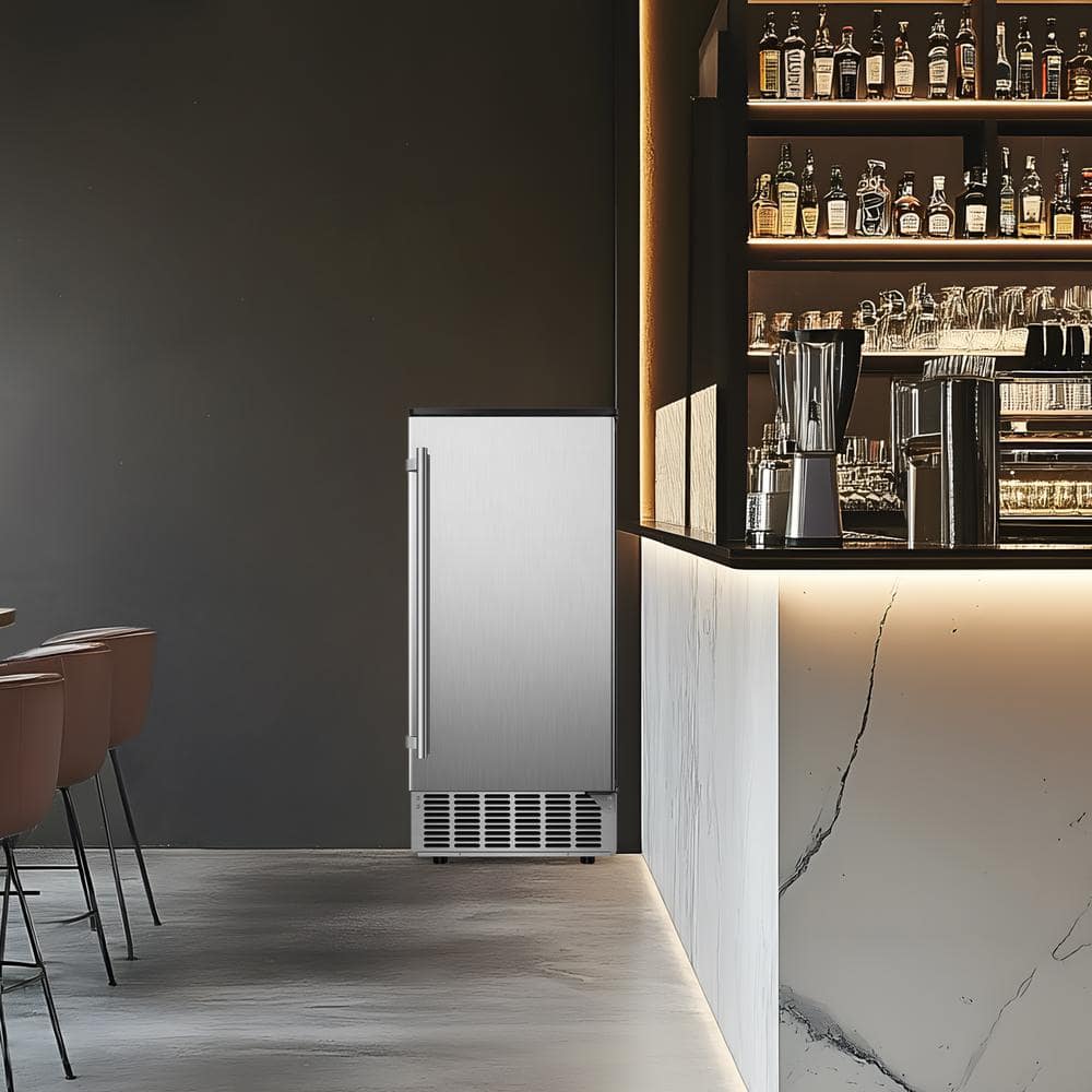 Denjol 15 in. 85LBS/24H Half Size Cube Commercial Freestanding/Built-in Ice Maker In Stainless Steel With 28LBS Ice Storage Bin