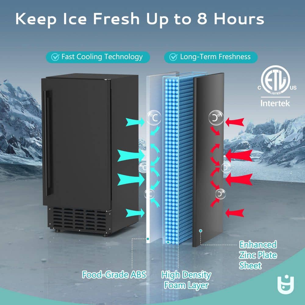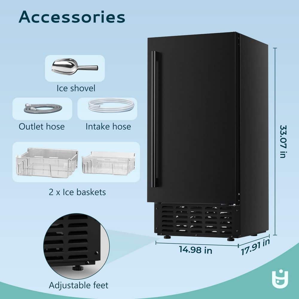 Meet the Euhomy Ice Maker: where industrial-strength performance meets sleek, modern design. Engineered for high-volume environments, it produces ice in just 5 minutes and delivers up to 66 lbs of ice per day-keeping you continuously stocked. The user-friendly multi-function LCD panel puts control at your fingertips, while enhanced insulation maintains ice quality for up to 8 hours. versatile enough for undercounter or freestanding installation, this ETL-certified unit combines dependable operation with durability. For best results, ensure correct drain line installation. Upgrade your ice production with Euhomy-built to support and elevate your business.