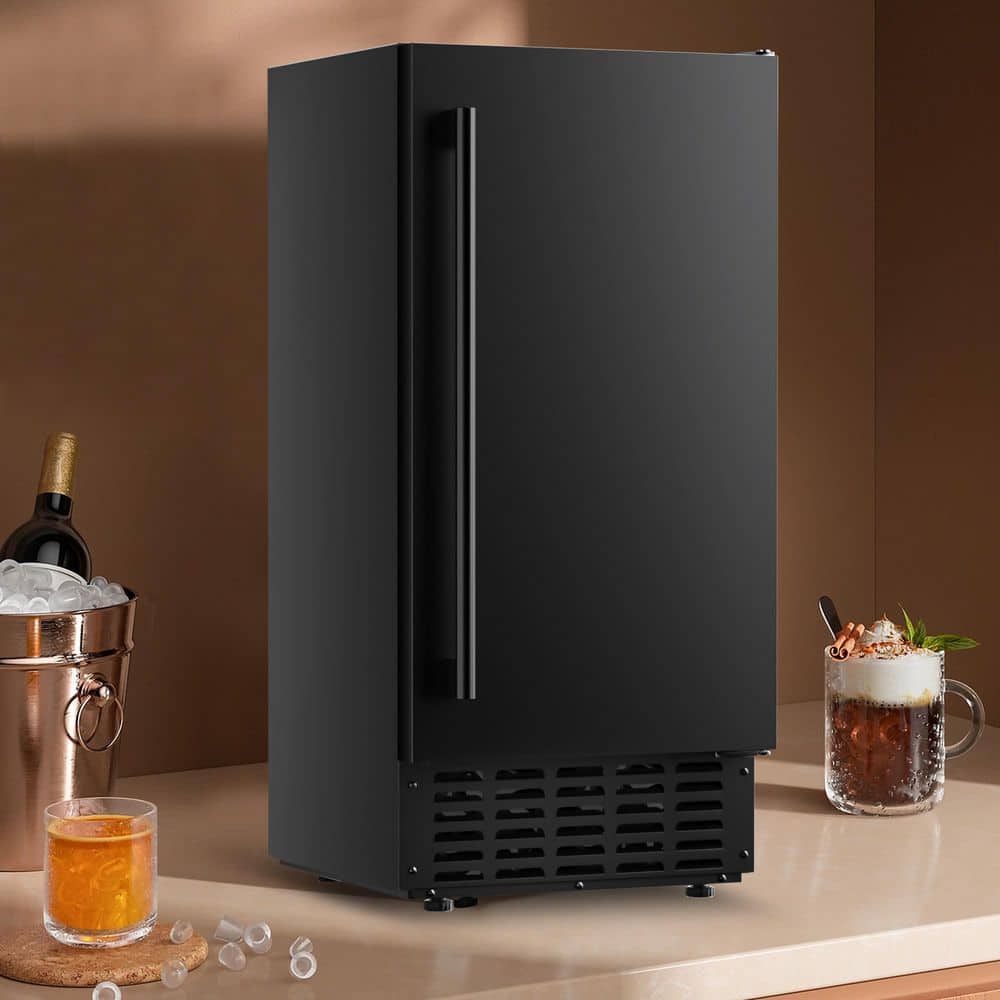 Hooure 15 in. Commercial Ice Maker 120 lbs./24 H Freestanding Black Ice Maker Full Size Cubes with 30 lbs. Storage