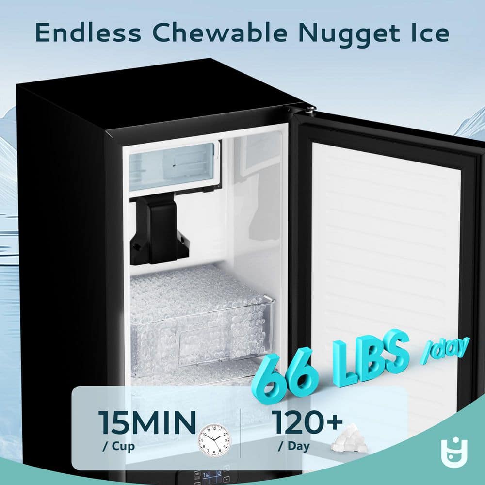 EUHOMY 18 in. 66 lbs. / 24H Nugget Ice Maker, Bulit-in/Freestanding, Freezer Ice Machine in Black with Ice Full Alert
