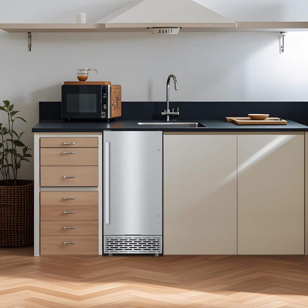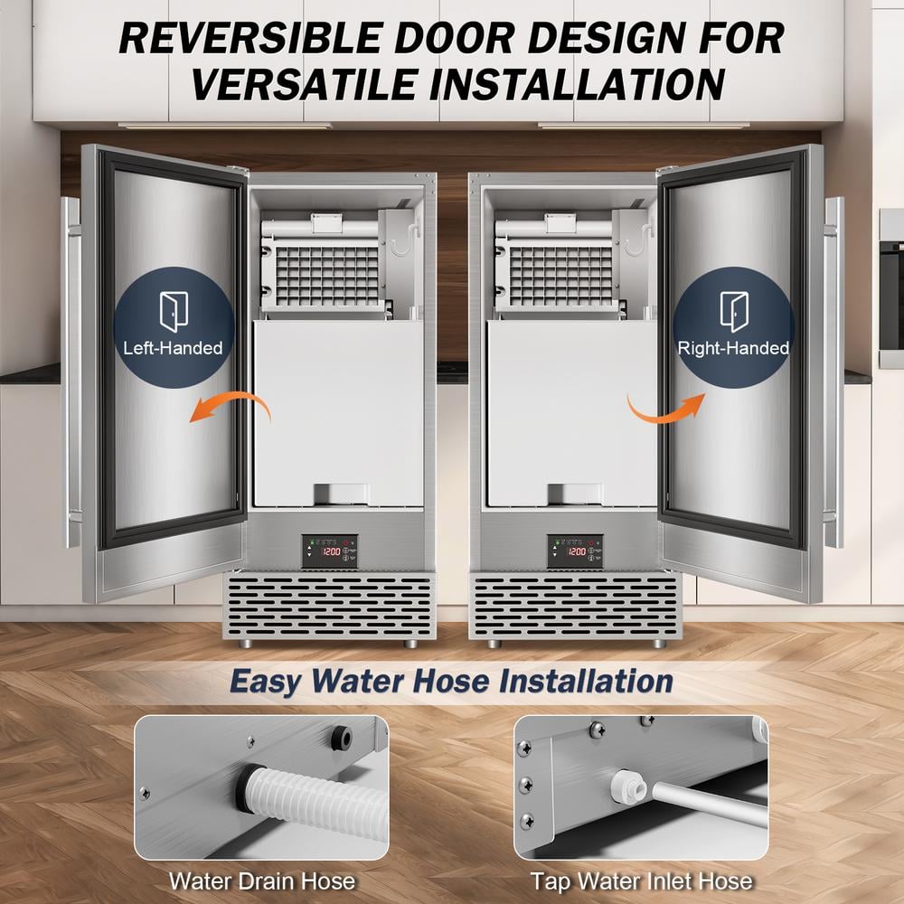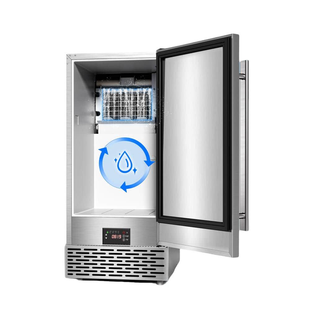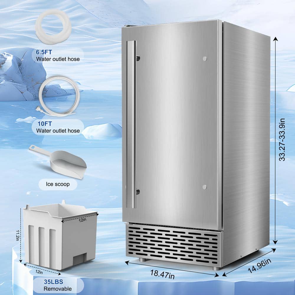 Hooure 15 in. 100 lbs./Day Full Size Cube Undercounter Commercial Ice Maker with 35 lbs. Ice Storage Bucket in Stainless Steel