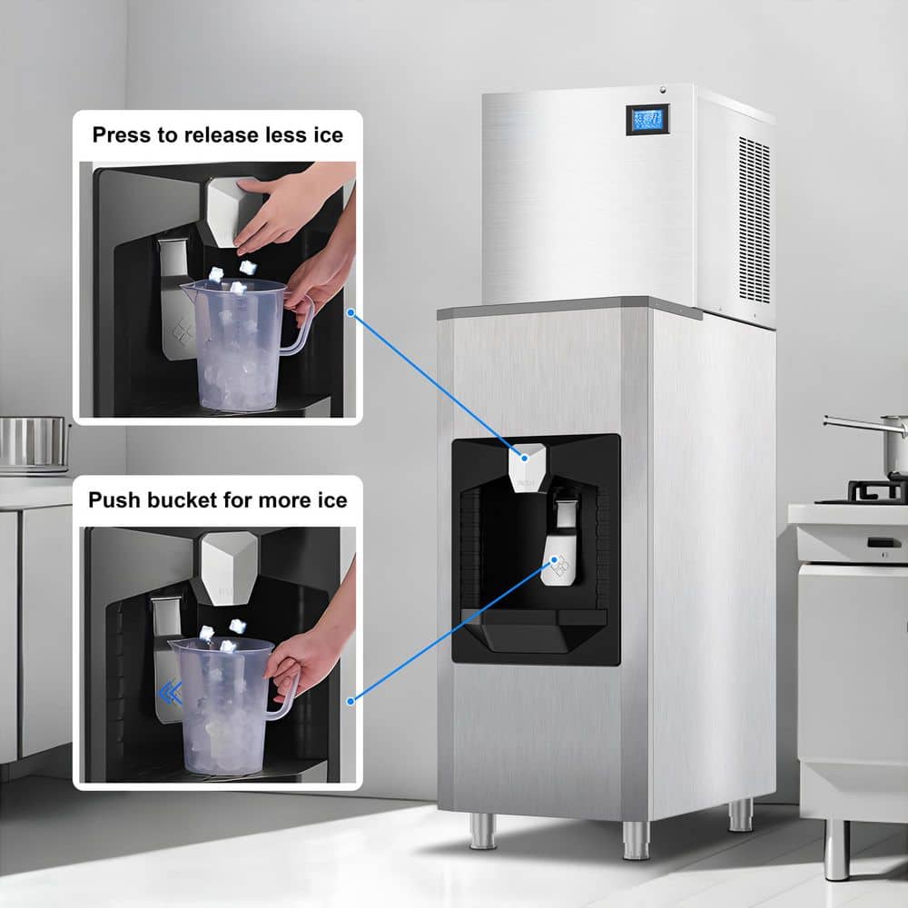 Mojgar 22.83 in. 500 lb. /24H Commercial Freestanding Ice Maker in Silver, Stainless Steel, with 400 lb. Storage Capacity