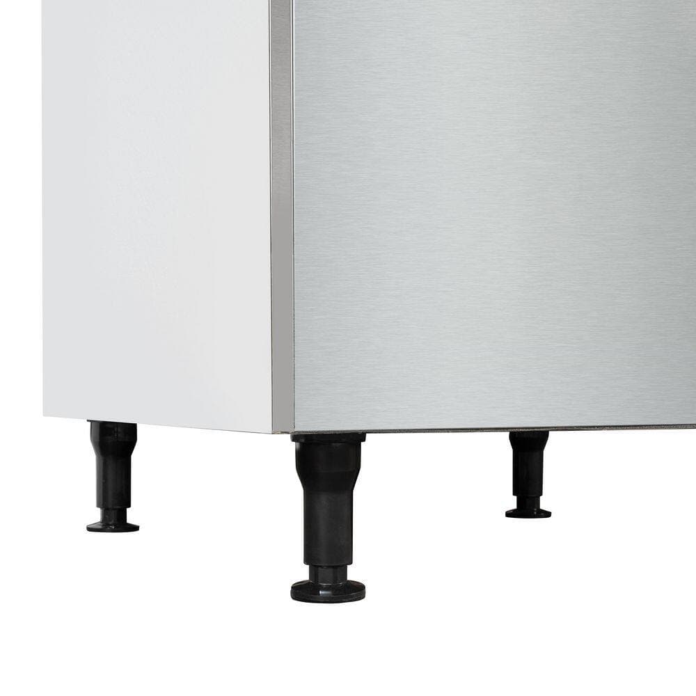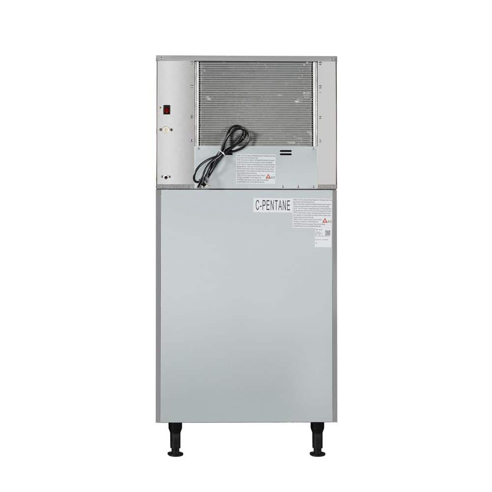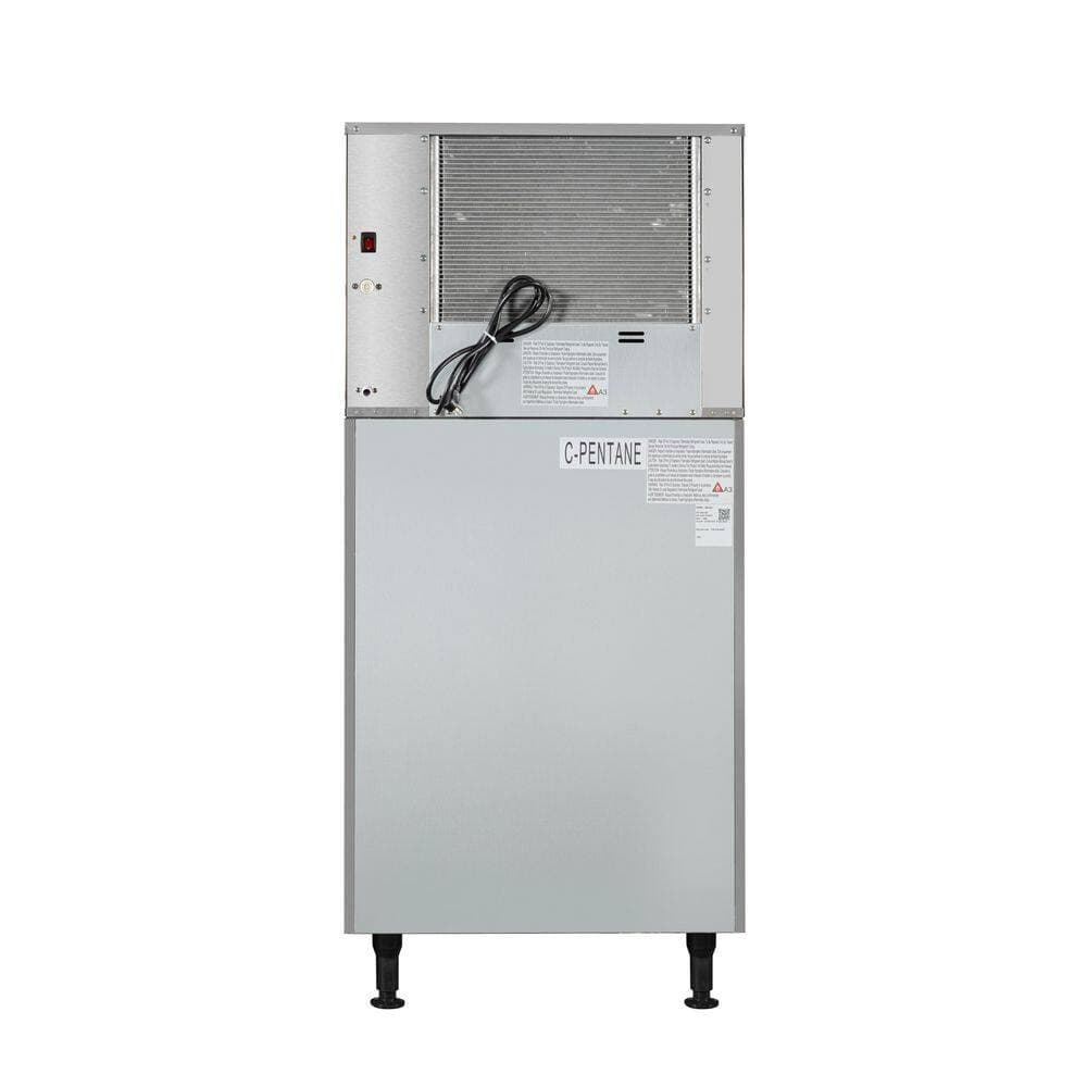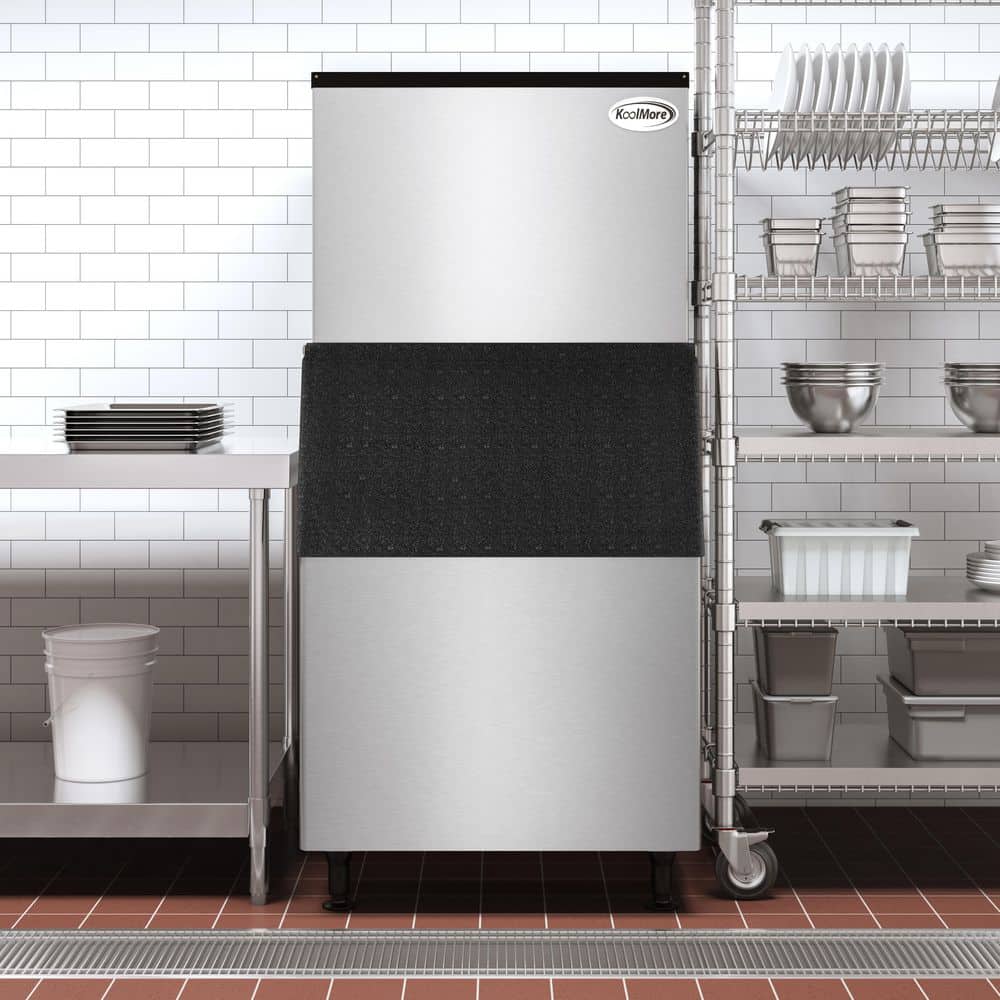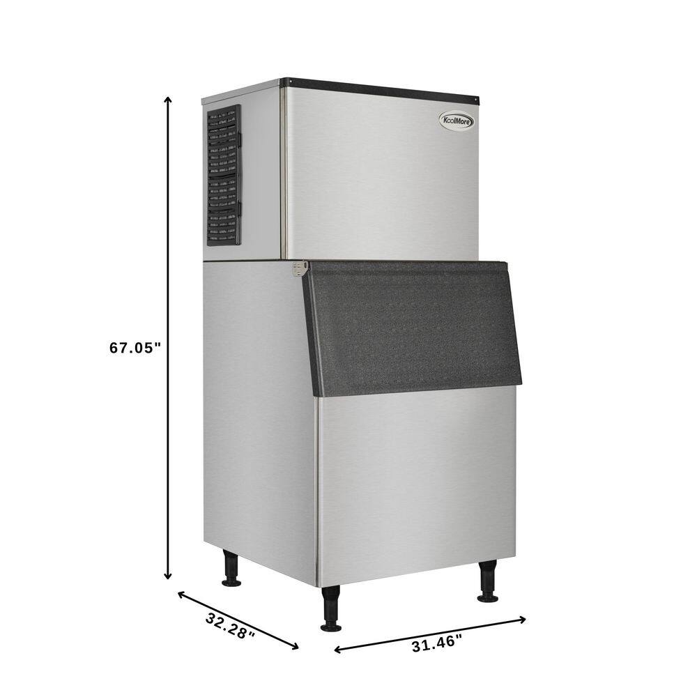 KoolMore 500 lbs./Day Stainless-Steel Commercial Ice MachineDesigned for high-demand commercial environments, this powerful ice maker produces up to 518 lbs. of ice daily and stores up to 717 lbs., ensuring a constant supply for busy service hours.Its advanced digital control panel offers precise customization, allowing users to easily monitor freeze and harvest cycles, adjust ice thickness, and activate automated cleaning.The efficient ice formation system evenly distributes water over the evaporator, creating crystal-clear cubes, while the innovative harvesting system gently releases ice into the bin without damage.An automatic defrost and self-check function maintains peak performance by preventing ice buildup and detecting potential issues before operation begins.A hygienic intermittent drainage system flushes excess water every five cycles, keeping ice fresh and dry, while a built-in bin sensor prevents overflow.The durable stainless-steel construction ensures long-term reliability in commercial kitchens, bars, and food service establishments, while adjustable telescopic feet provide stability on uneven floors.NSF and ETL certified for safety and sanitation, this ice maker guarantees clean, high-quality ice and comes with 1-year manufacturer's coverage for added peace of mind.