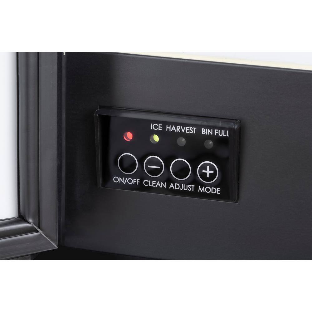 - Makes 50 lbs. of ice per day and stores 25 lbs.