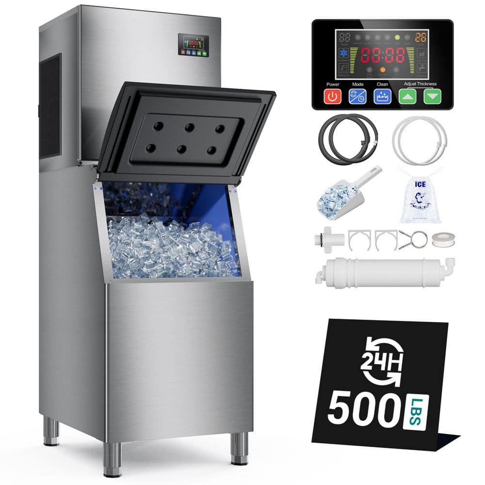 Mojgar 22.83 in. 500 lb. /24H Commercial Freestanding Ice Maker in Silver, Stainless Steel, with 400 lb. Storage Capacity