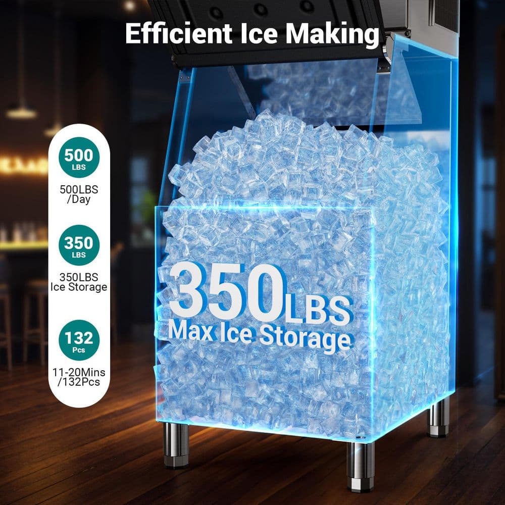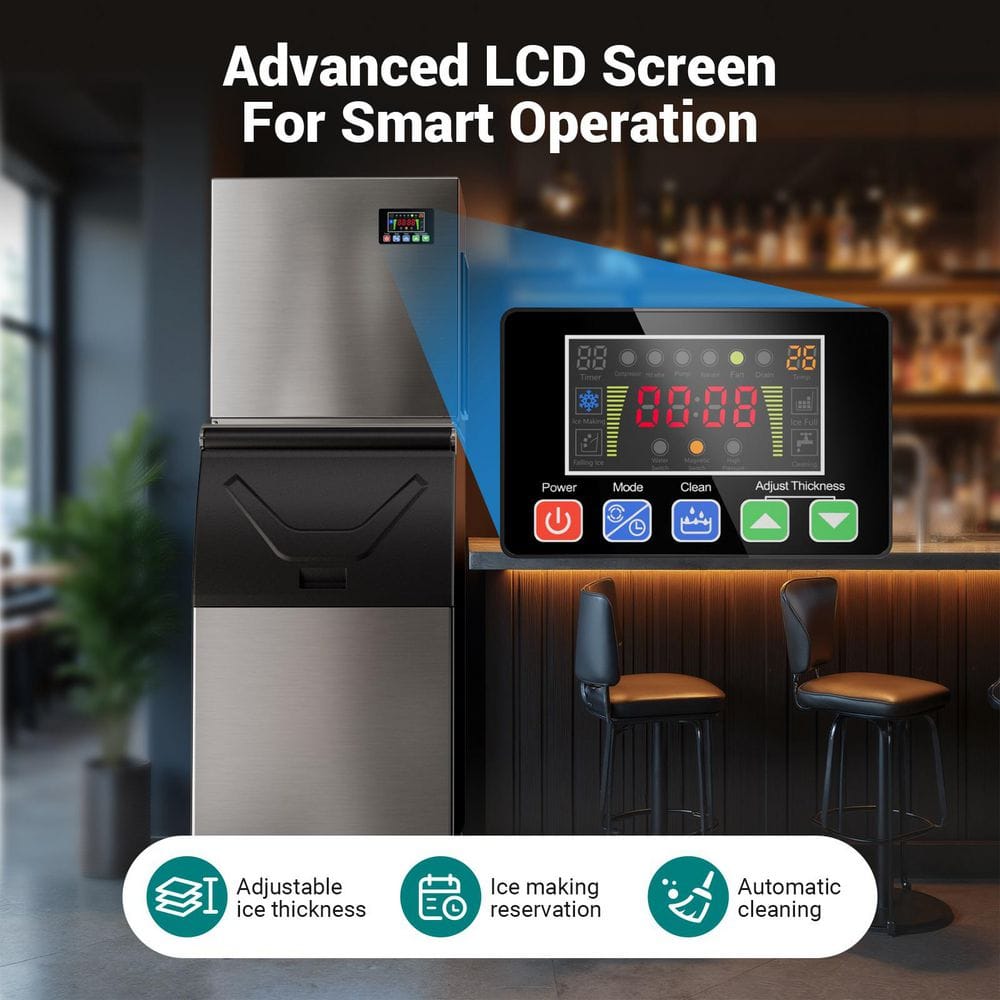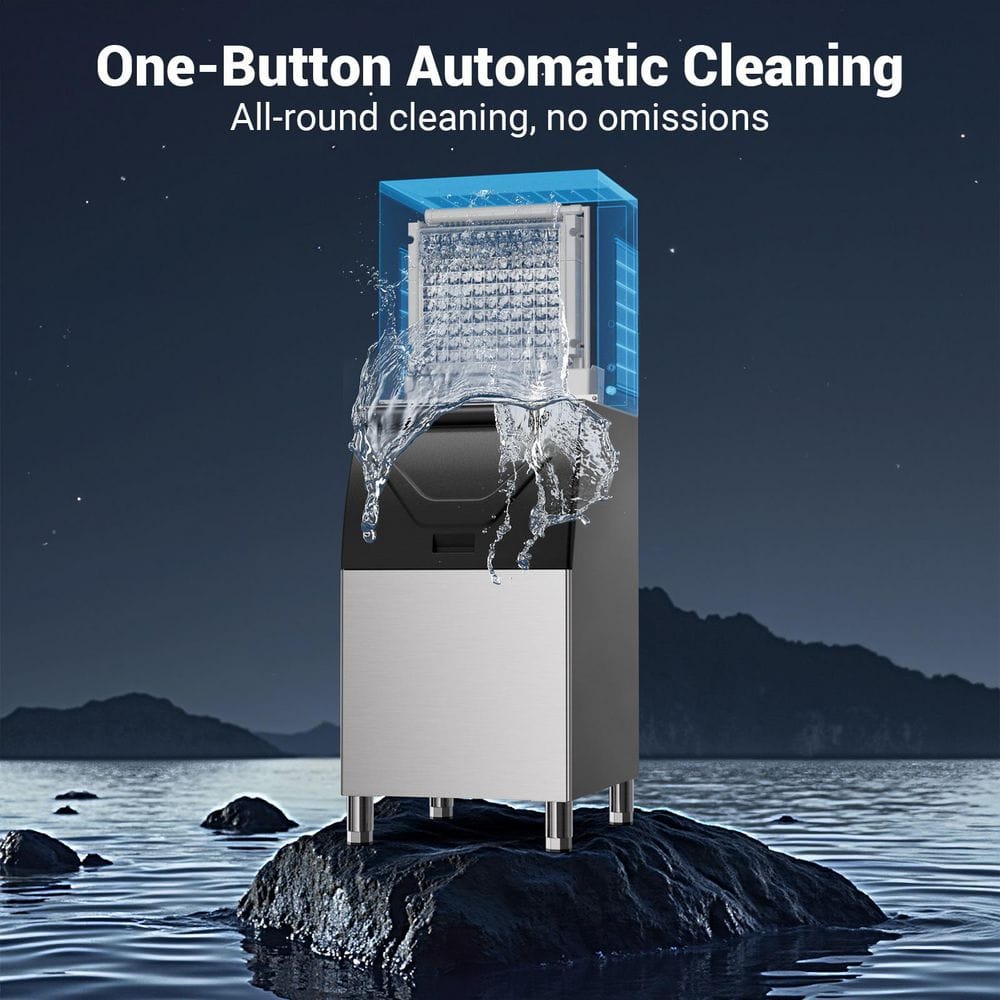 This commercial-grade ice machine from Mojgar can produce up to 500 lbs. of ice per day and store up to 350 pounds of ice at a time, making it a reliable solution for busy restaurants, cafes, and other commercial settings. With a self-cleaning mode, adjustable ice thickness, and food-grade safety materials, this ice maker ensures consistent, high-quality ice cubes while minimizing maintenance. The machine also features a timing function and comes with a 3-year warranty on the machine and a 5-year warranty on the compressor, providing peace of mind and long-lasting performance.