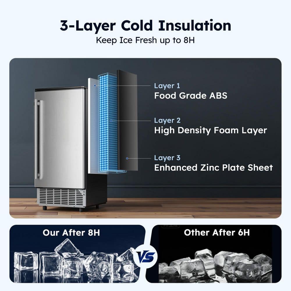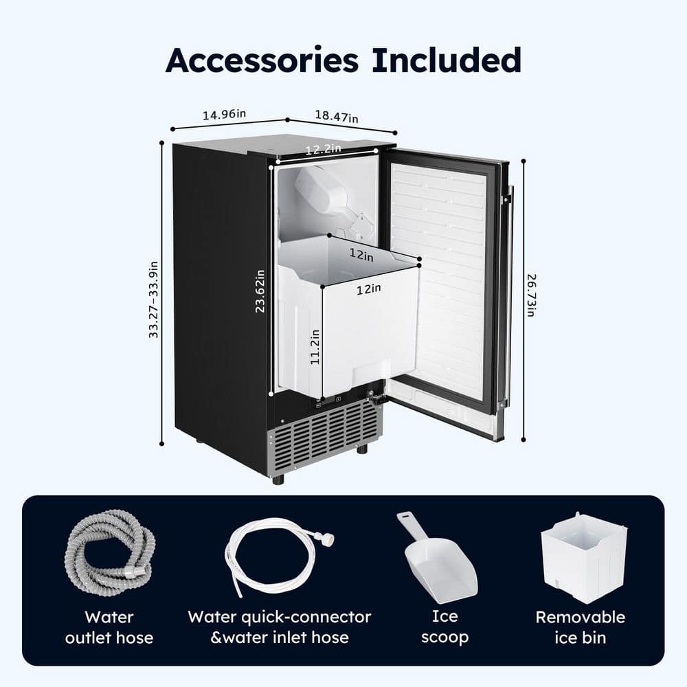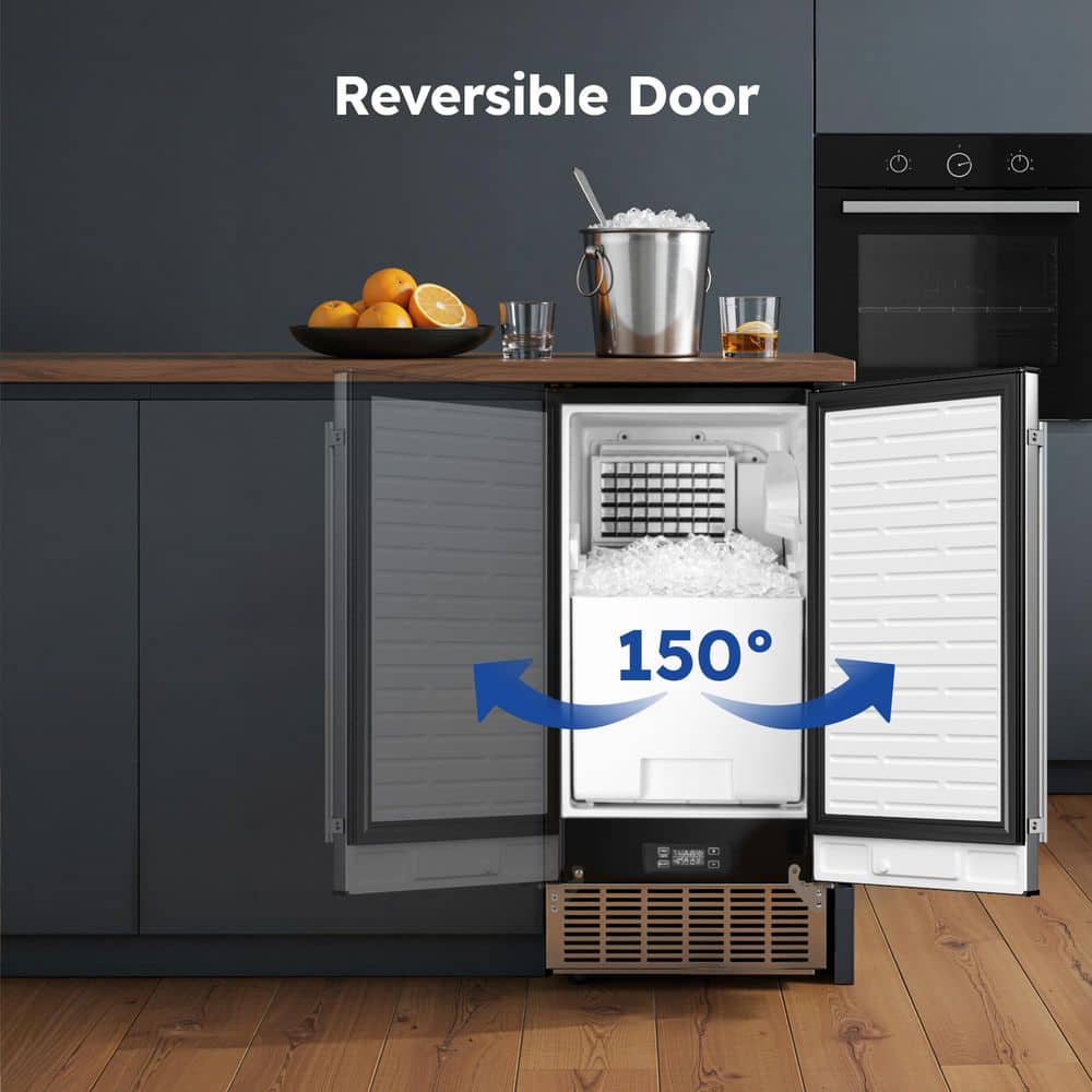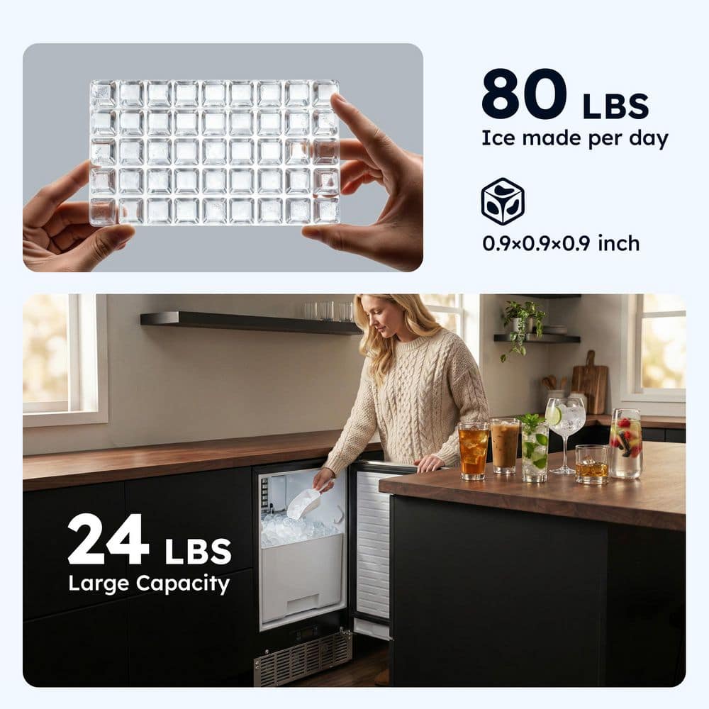 SIMZLIFE 15 in. 80 lb./24H Full Size Cubes Undercounter/Built-in Commercial Ice Maker in Stainless Steel, Gravity Drainage
