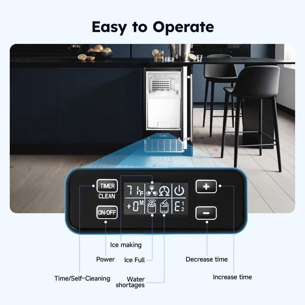 Discover professional-grade ice making with our commercial ice maker! Engineered for efficiency, this unit produces 80 lbs. of ice per day in just 11-20 minutes, backed by a 25-lb storage bin for continuous supply. The intuitive LCD control panel delivers effortless operation, while the 360° self-cleaning system ensures hassle-free maintenance. Featuring triple-layer insulated construction with 6-hour ice retention to preserve freshness, all housed in a premium stainless steel exterior that combines durability with sleek aesthetics - the ultimate ice solution for homes and businesses alike.For after-sales inquiries or technical assistance, please contact support@simzlife.com