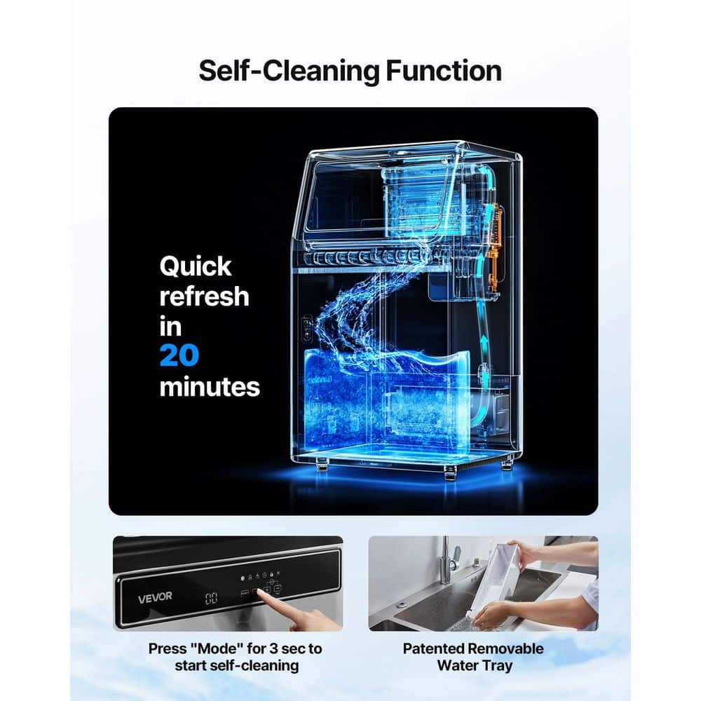 VEVOR Commercial Ice Maker 17.52 in. W 130 lbs./24H Full Size Cubes Freestanding with 33 lbs. Storage Capacity LED in Silver