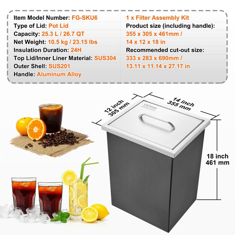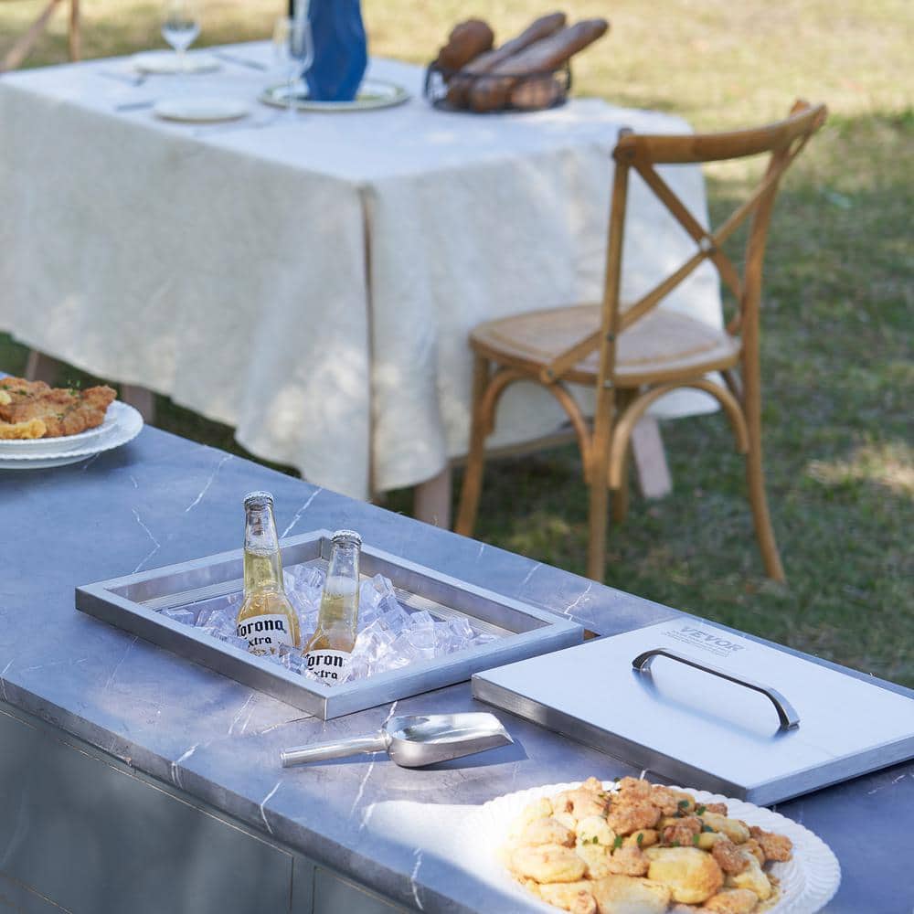 VEVOR Drop in Ice Chest 14 in. L x 12 in. W x 18 in. H Ice Cooler with Cover 40 qt. Outdoor Kitchen Stainless Steel Ice Bar