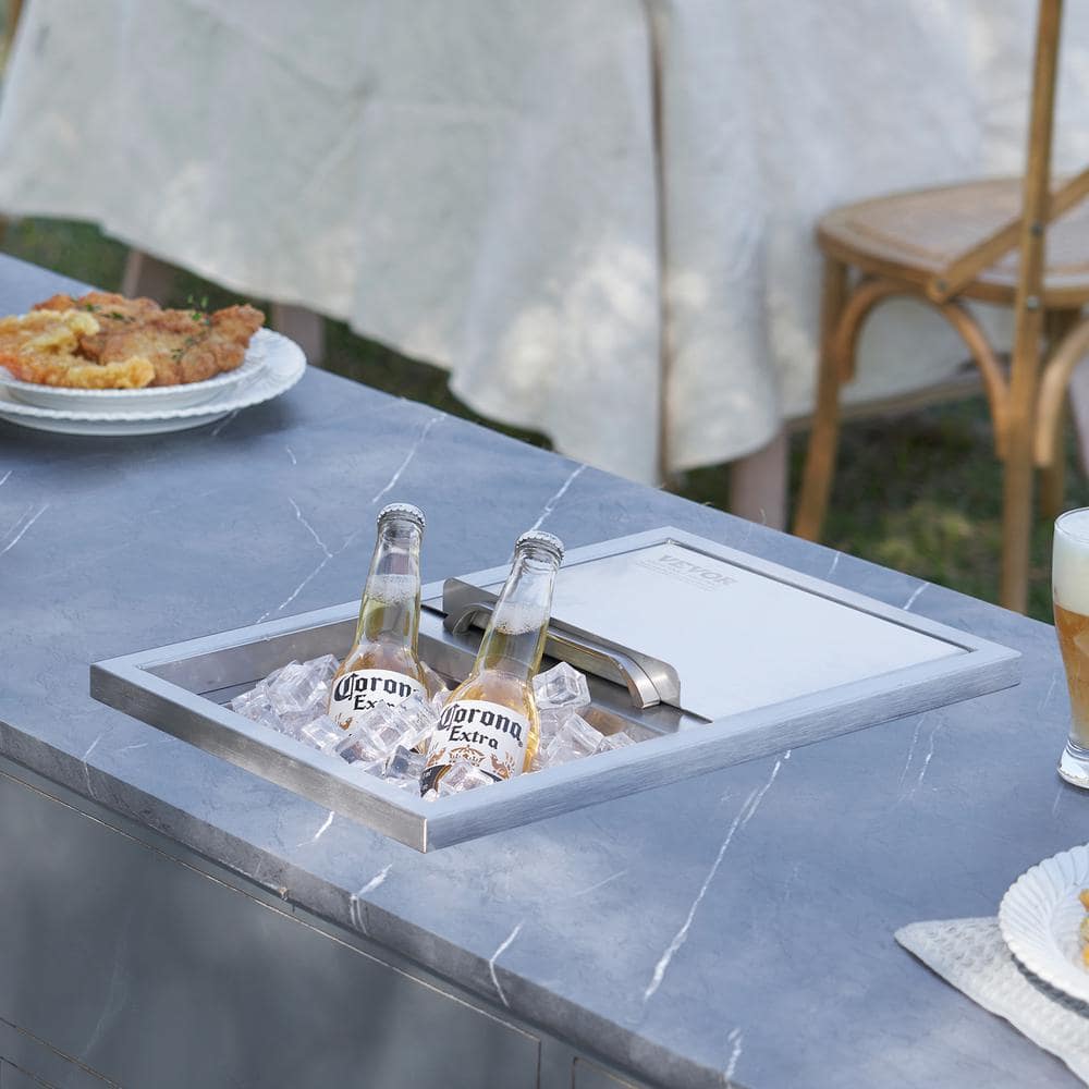 Embedded Ice Storage Chest. A large-capacity stainless steel drop in ice bin, capable of holding a substantial amount of ice, perfectly meeting your commercial and domestic needs. Features a 20 mm/0.79 in. thickened PU foam insulation layer, ensuring over 24-hours of insulation.