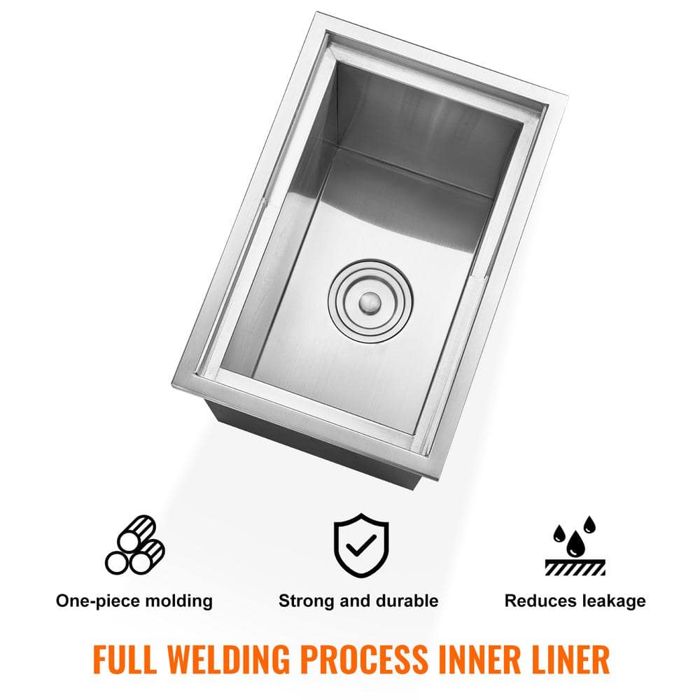 VEVOR Drop in Ice Chest 18 in. L x 12 in. W x 14.5 in. H Stainless Steel Ice Cooler Commercial Ice Bin with Cover 40.9 qt.