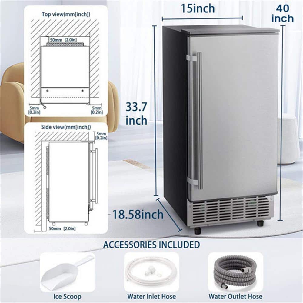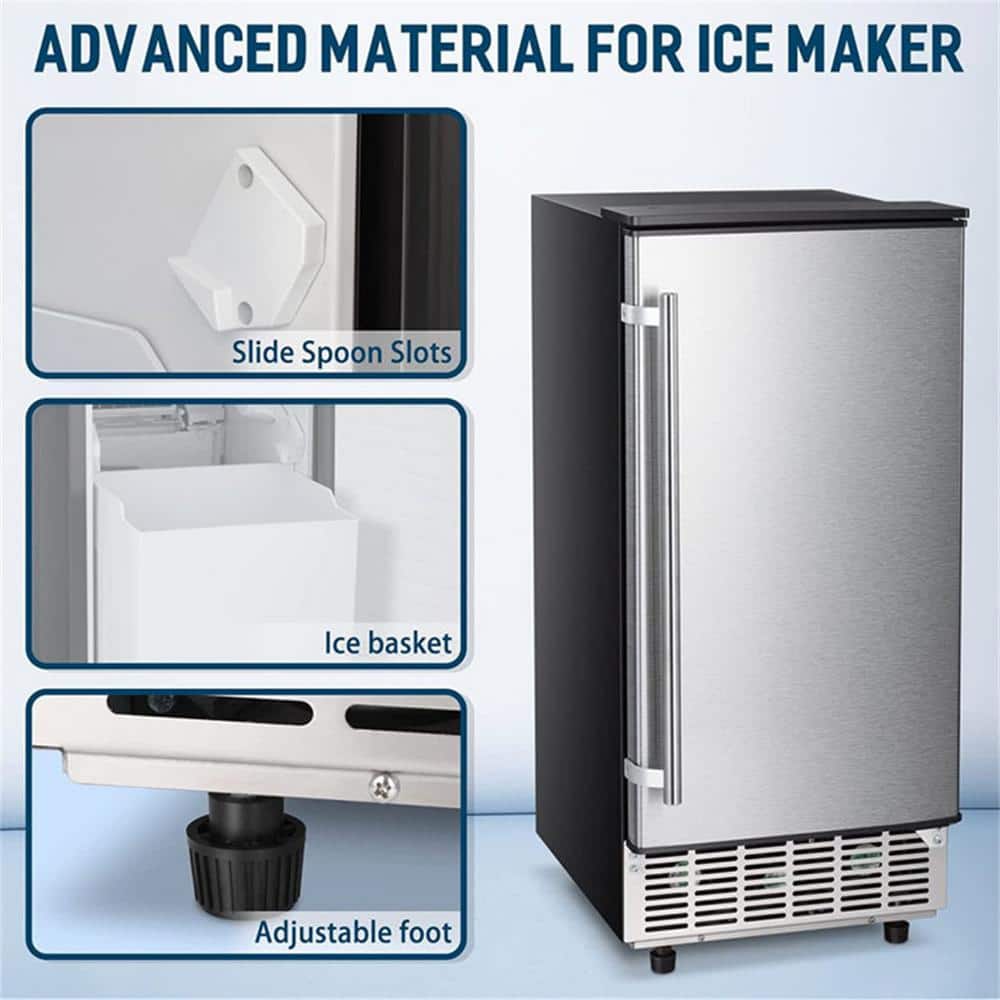 COWSAR 15 in. 80 lbs. Freestanding/Under Counter Ice Maker in Stainless Steel Silver