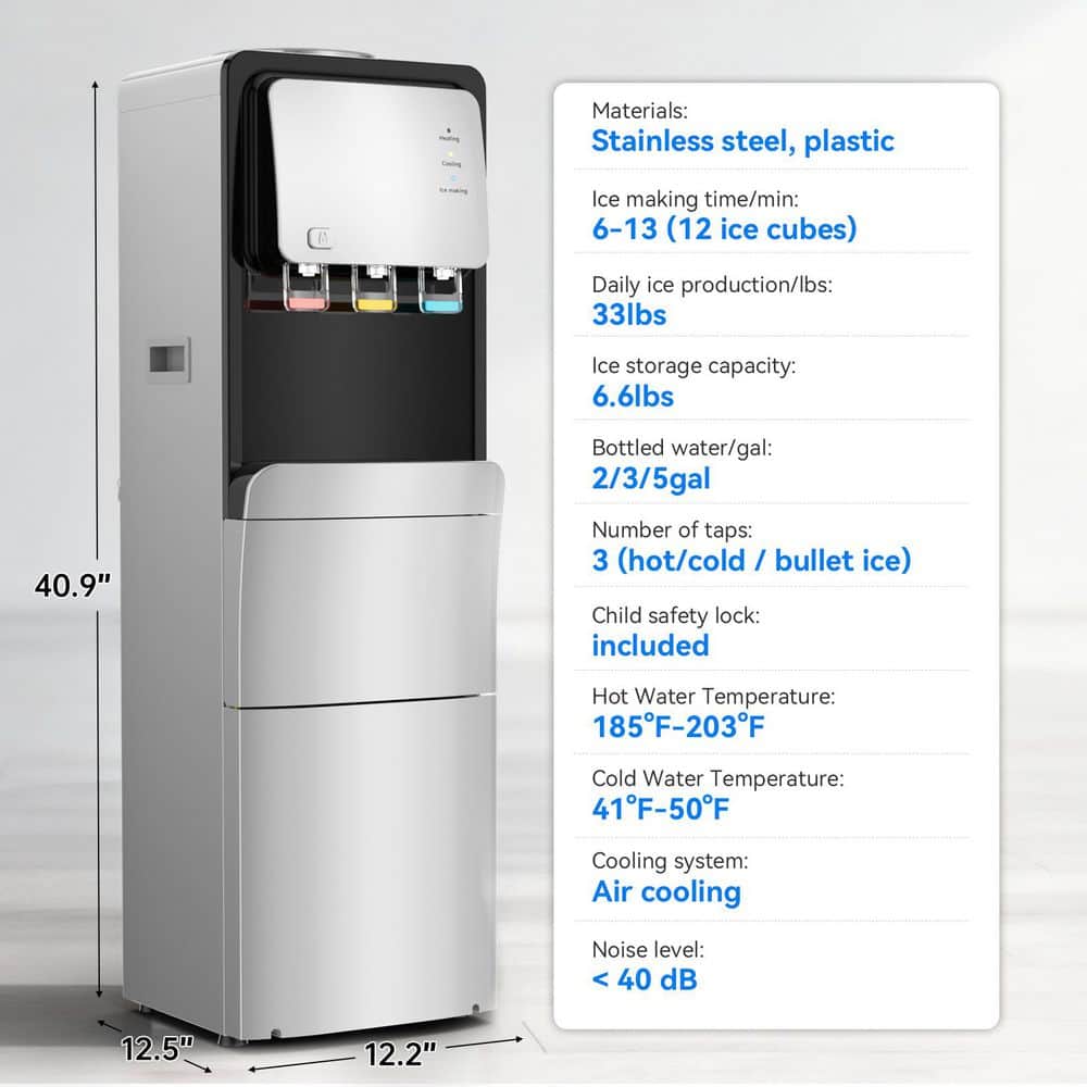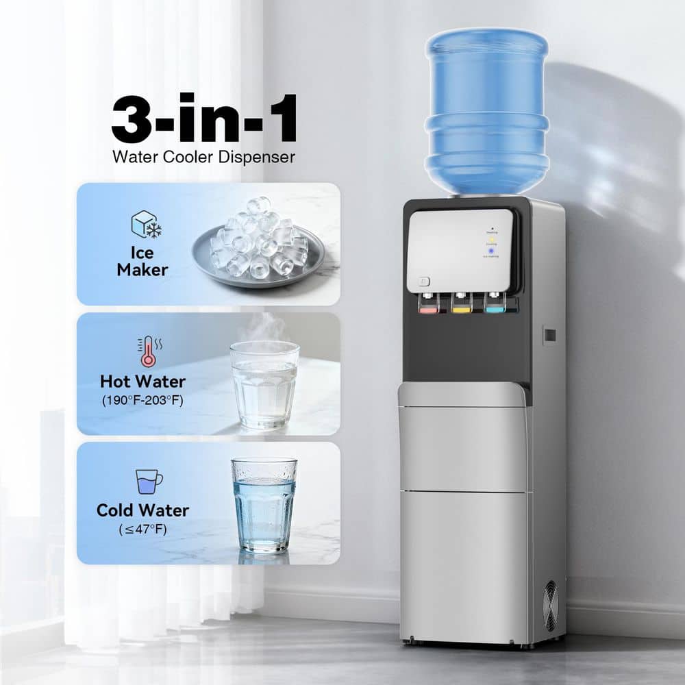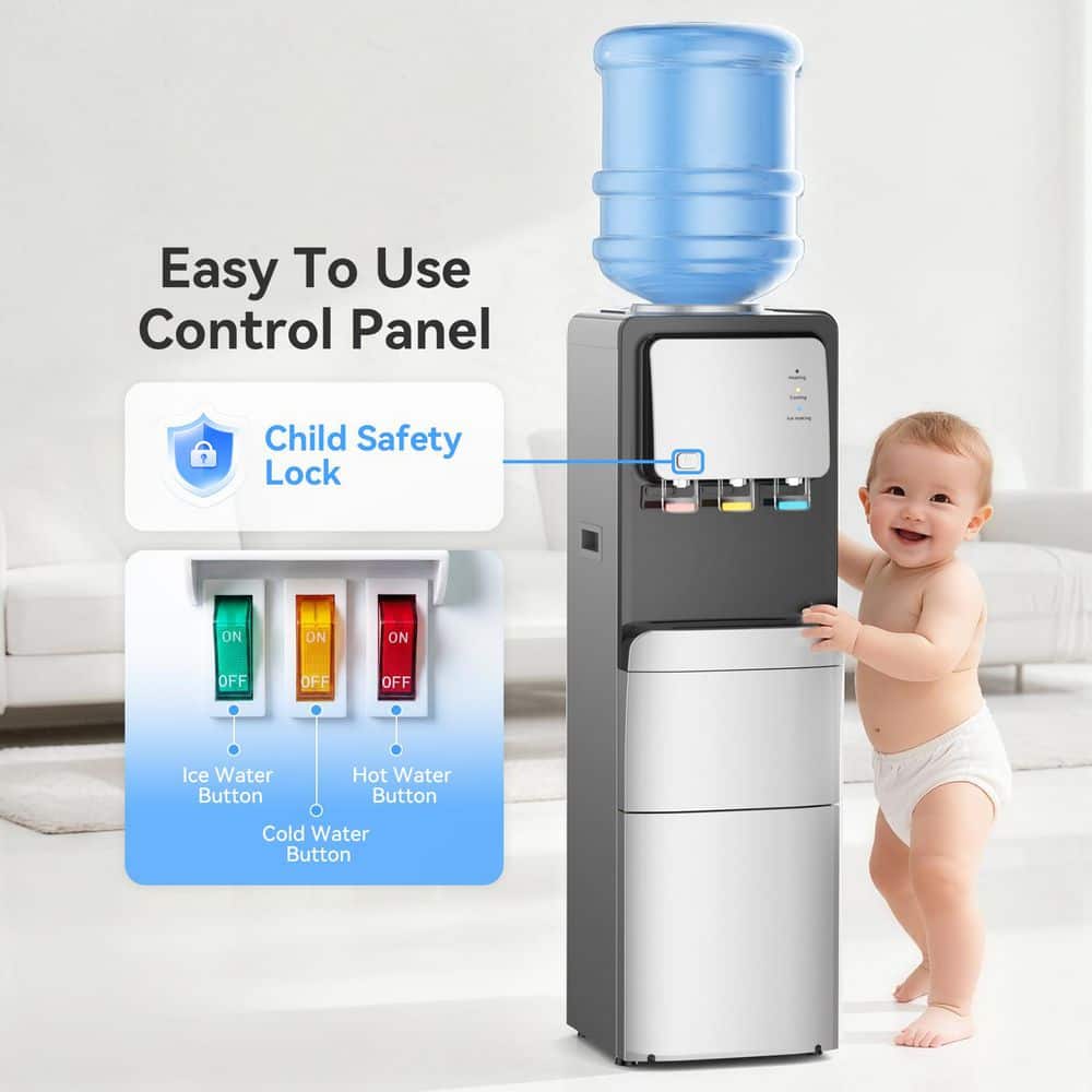 Mojgar 4-in-1 Water Dispenser with Ice Maker and Self-Cleaning-Hot/Cold Water Dispenser for 3-5 Gallon Bottles